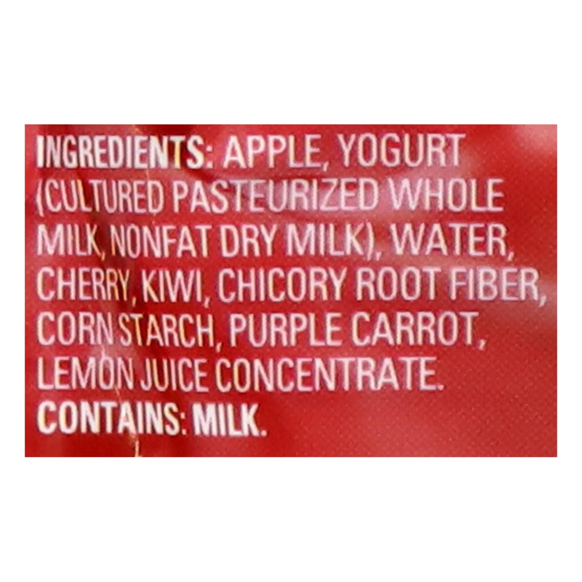 Apple, Yogurt (Cultured Pasteurized Whole Milk, Nonfat Dry Milk), Water, Cherry Kiwi, Chicory Root Fiber, Corn Starch, Purple Carrot, Lemon Juice Concentrate.