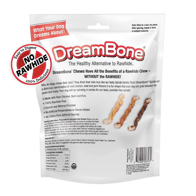 - RAWHIDE-FREE DOG CHEWS: Easy-to-digest DreamBone® Spirals Variety chews have the benefits of a rawhide chew—without the rawhide!
