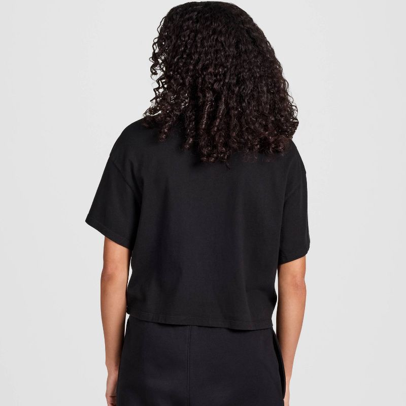 - Loose-fitting women's cropped crewneck t-shirt, 20.5-inch body length