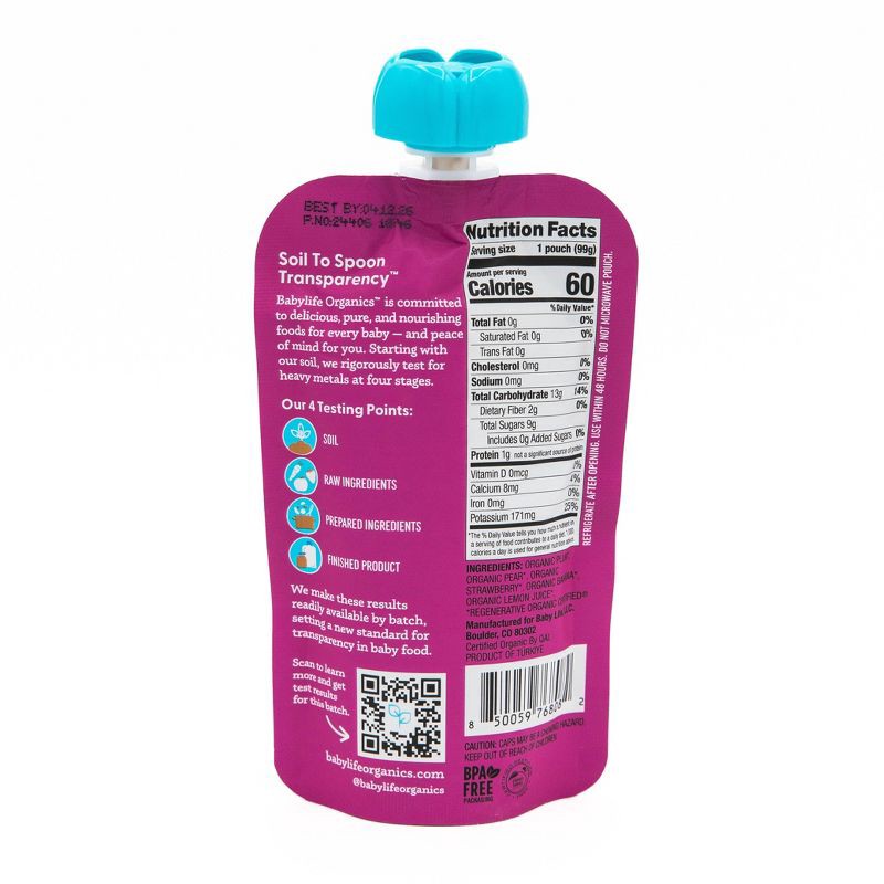 Babylife Organics Plum Pear Strawberry and Banana Baby Food Pouch - 3.5oz: Age Level 10M+, 2nd Stage, Pureed Baby Food, Ready to Eat