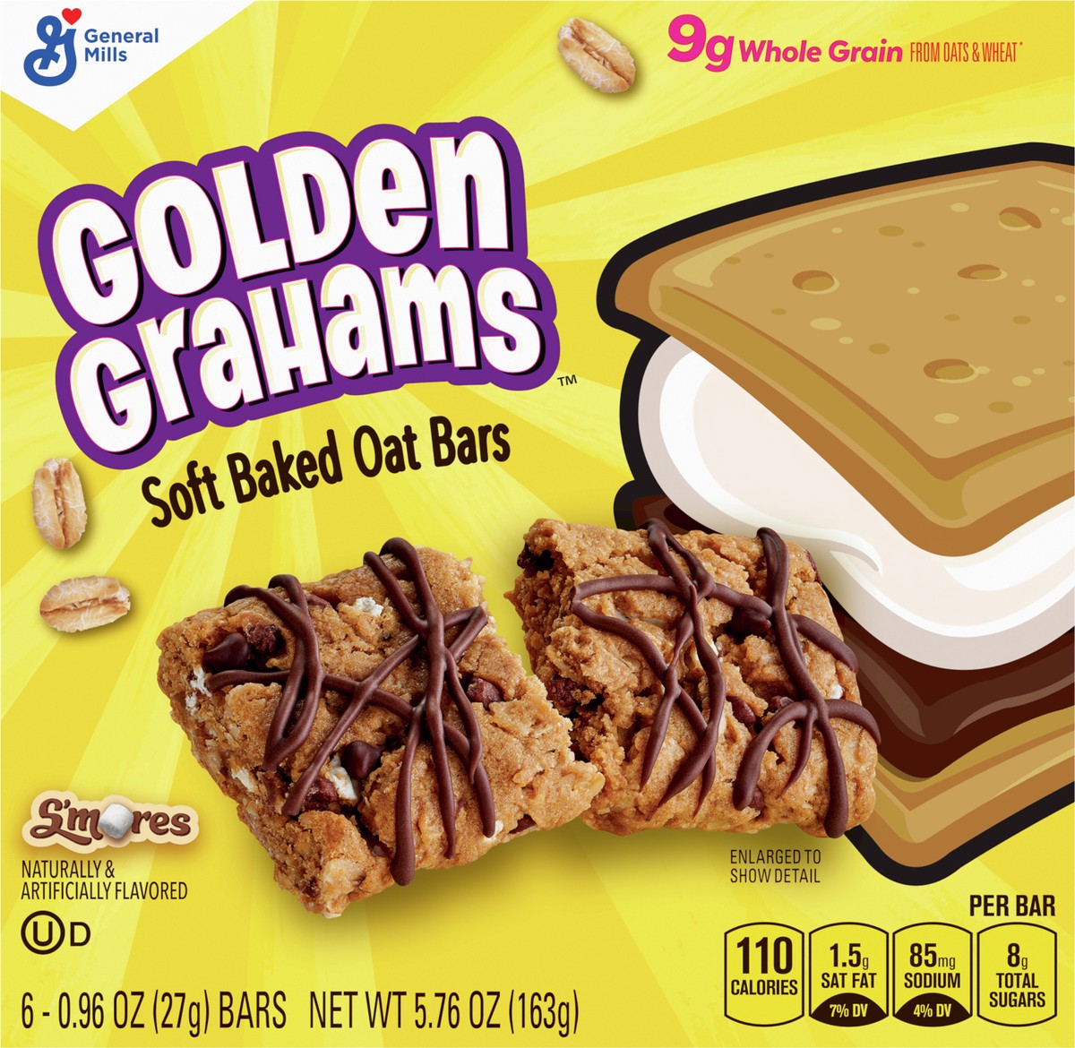 Golden Grahams S'mores Soft Baked Oat Bars, Chewy Snack Bars, 6 ct