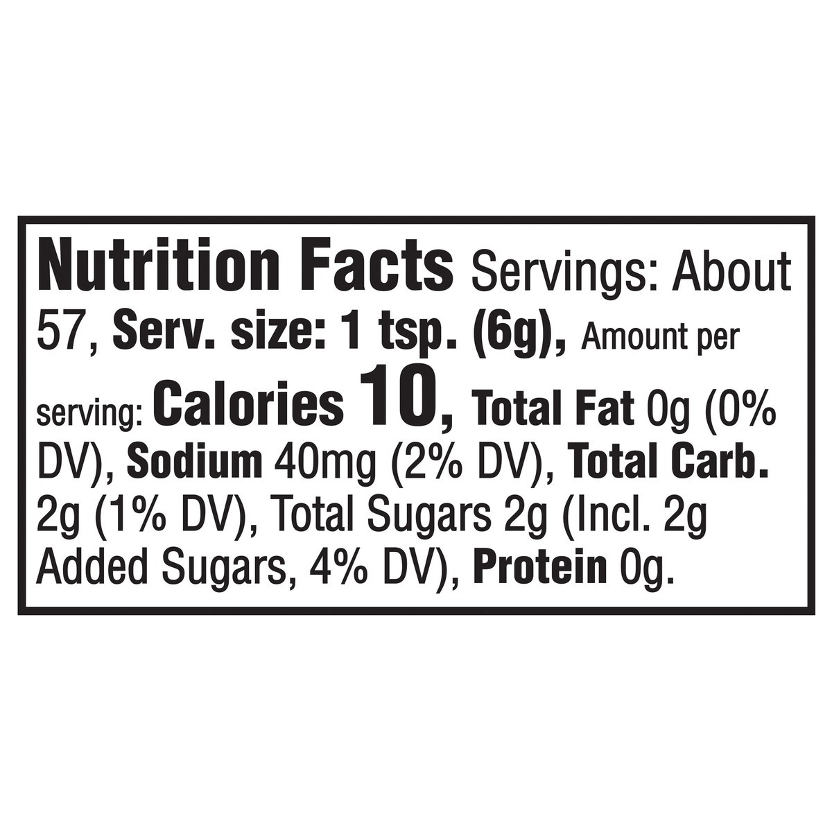 Distilled Vinegar, Sugar, Water, #1 Grade Mustard Seed, Honey, Salt, Red Pepper, Spices & Turmeric.