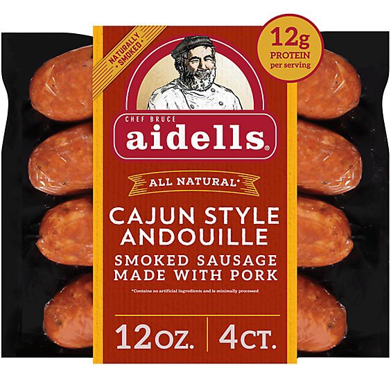 Aidells Cajun Style Andouille Smoked Pork Sausage Links are seasoned with a special Creole spice blend to add a Cajun kick to your meals. This cajun smoked sausage is gluten free and all natural, mean…