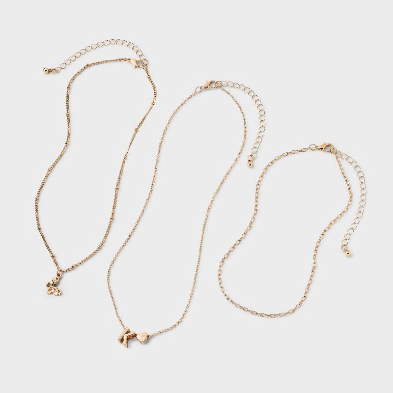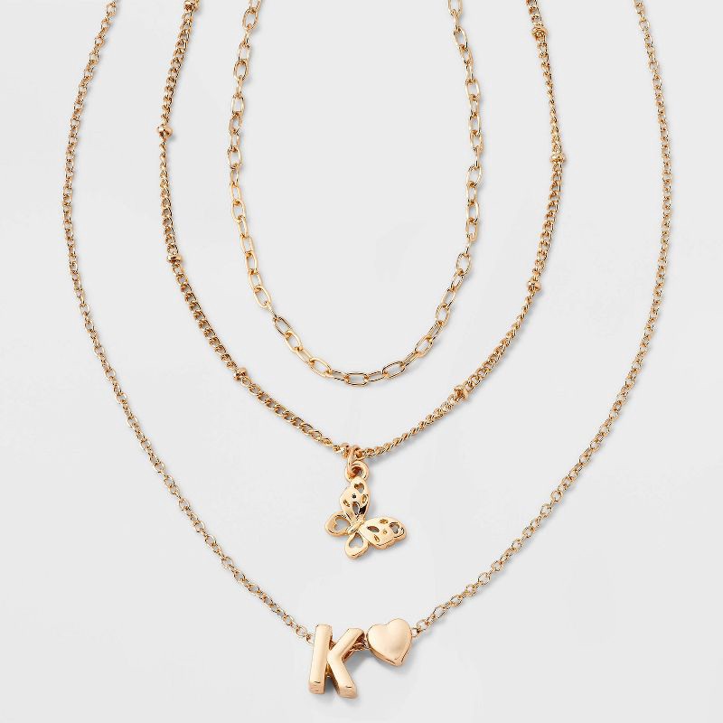 Girls' K Initial with Choker and Layered Necklace Set - art class™ Gold