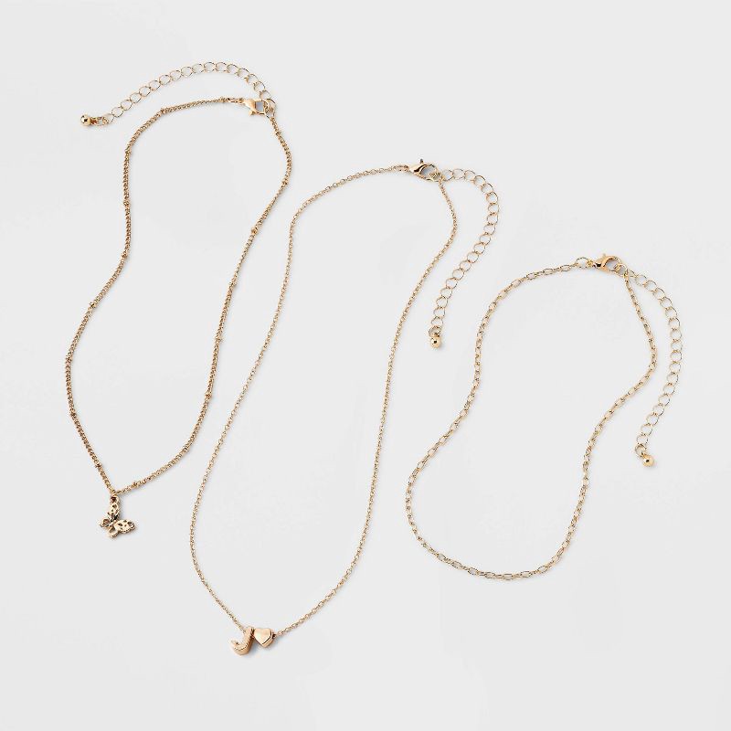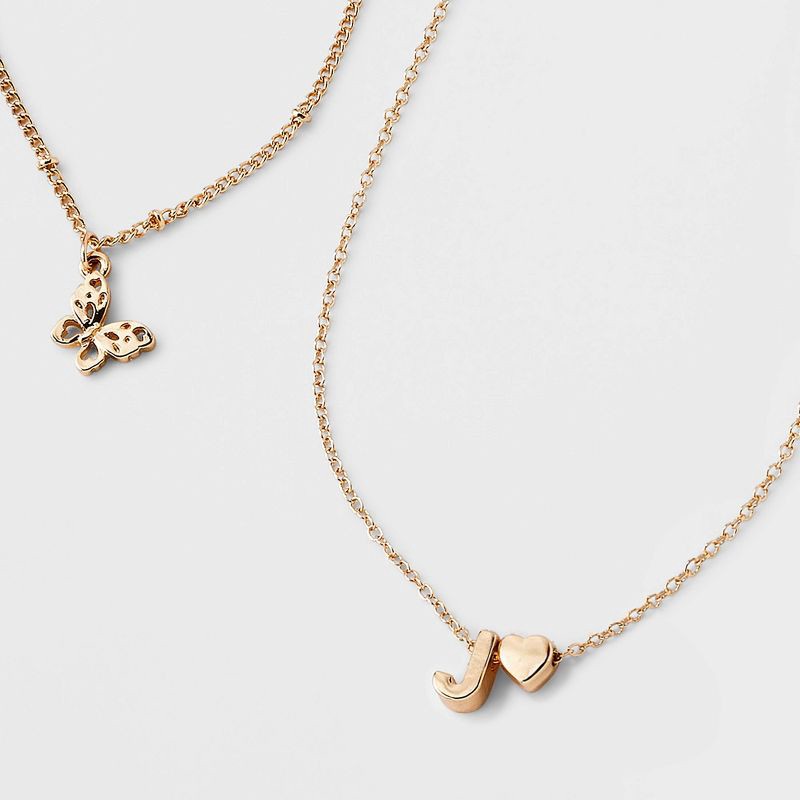 Girls' J Initial with Choker and Layered Necklace Set - art class™ Gold