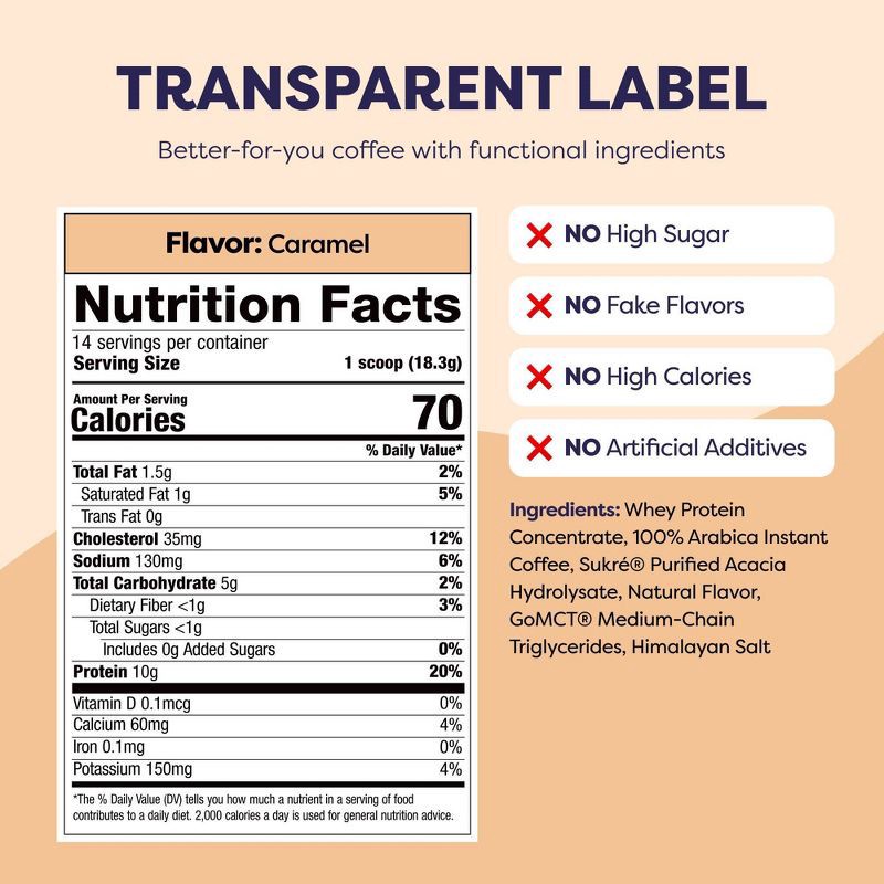 - Flavor: Buttery caramel flavored coffee with premium whey protein