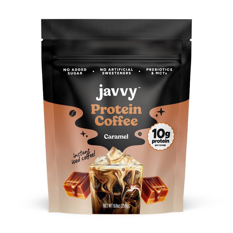 - One 9oz bag of Javvy Coffee's Caramel Protein Coffee