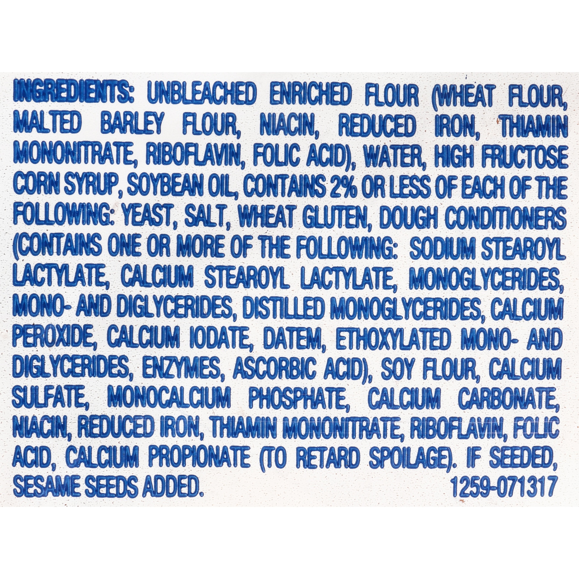 Unbleached Enriched Flour (Wheat Flour\, Malted Barley Flour\, Niacin\, Reduced Iron\, Thiamin Mononitrate\, Riboflavin\, Folic Acid)\, Water\, Sugar\, Soybean Oil\, Contains 2% or Less of Each of the…