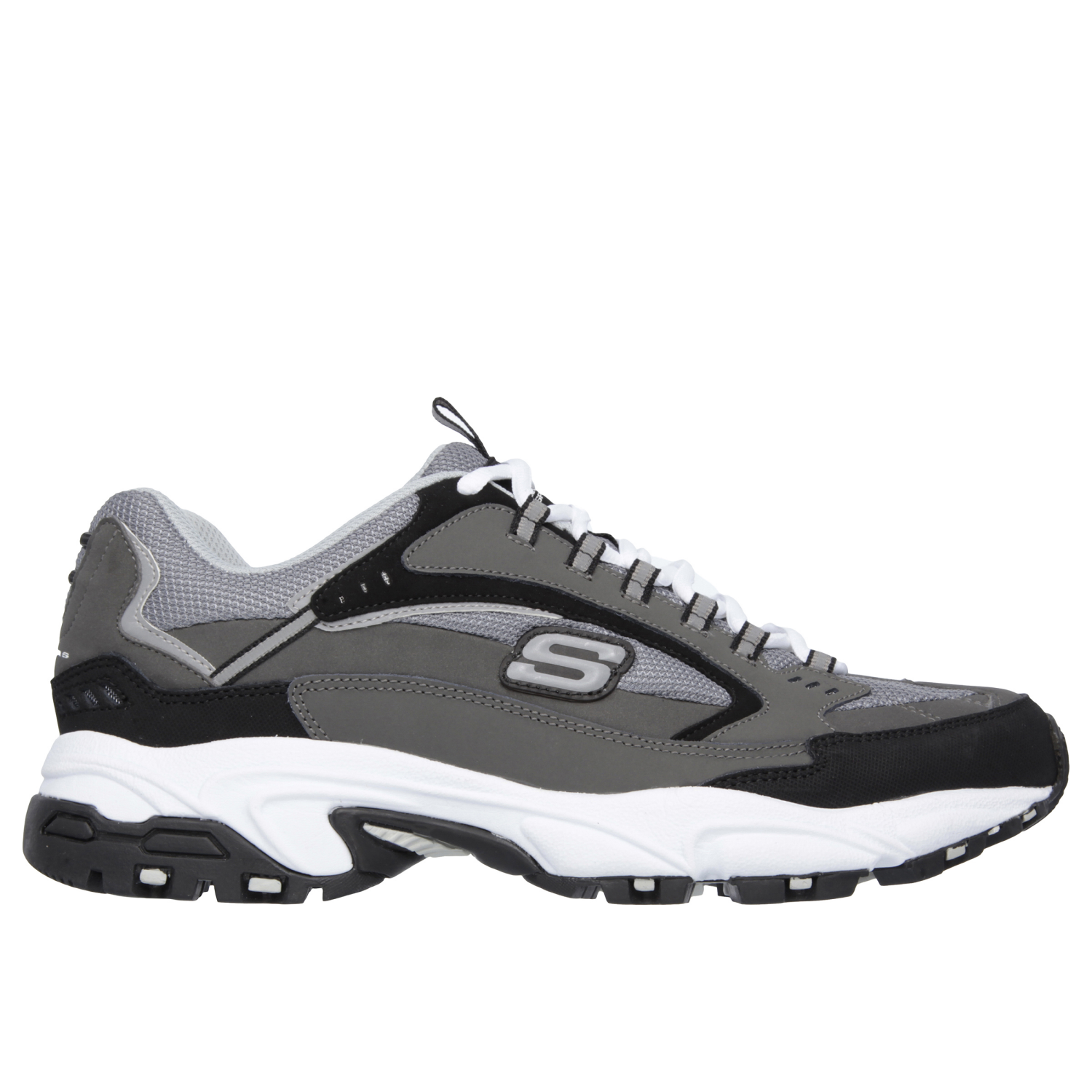 Hit the trails in athletic comfort with Skechers Stamina - Cutback. This lace-up hiking trail design features a leather, synthetic and mesh upper with a Skechers Memory Foam insole.