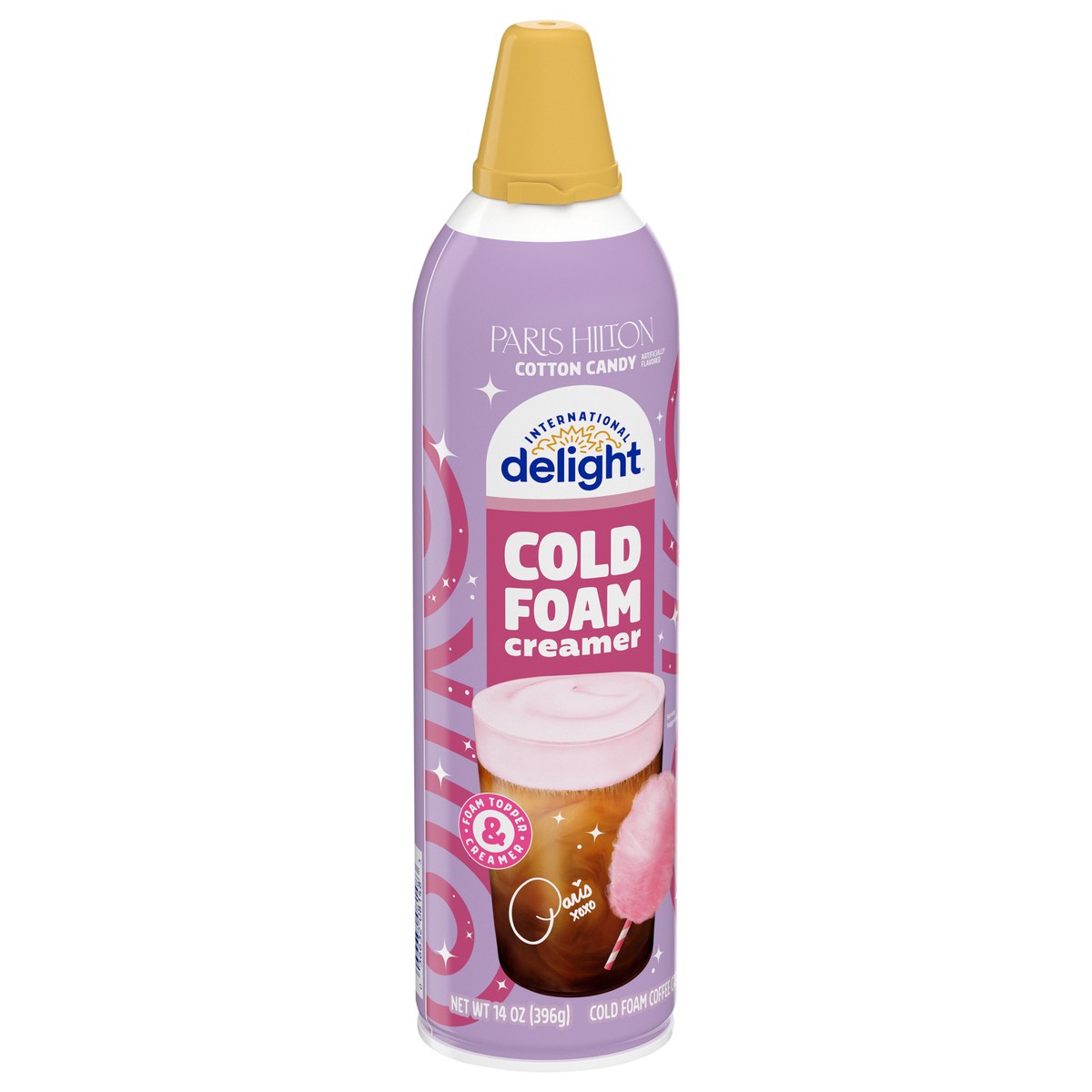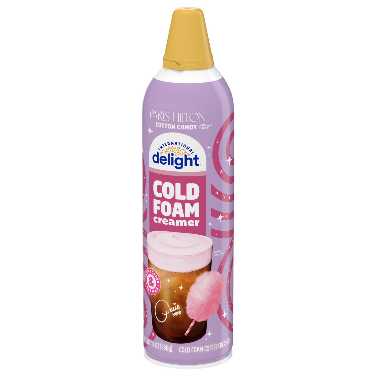 - Don''t Be Boring: One 14 oz can of International Delight Paris Hilton Cotton Candy Cold Foam Coffee CreamerFoams, Creams, Loves It: Delicious cold foam topper meets flavor-rich cotton candy coffee creamerUse in Hot or Cold Coffee: Cold foam creamer works great in your morning hot coffee, iced coffee and afternoon cold brewDelicious Cotton Candy Flavor: Sliv it up by spraying sweet and creamy flavor in secondsShare the Joy: International Delight Cold Foam Coffee Creamers are lactose free (contains sodium caseinate, a milk derivative); keep refrigerated until you''re ready to use it