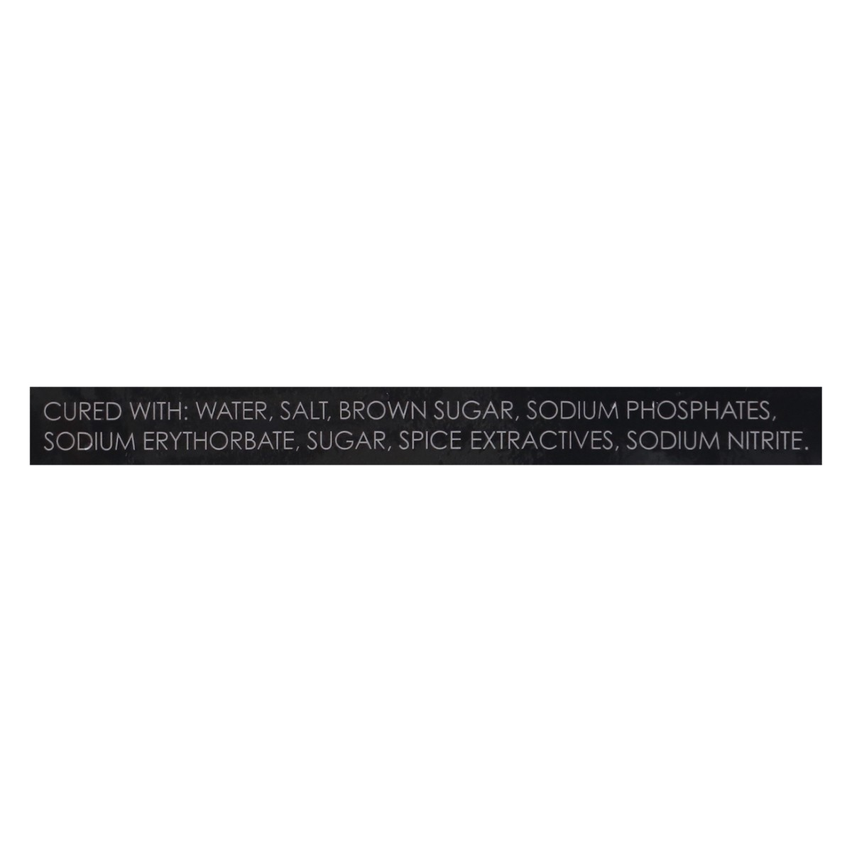 Cured with: Water, Salt, Brown Sugar, Sodium Phosphates, Sodium Erythorbate, Sugar, Spice Extractives, Sodium Nitrite.