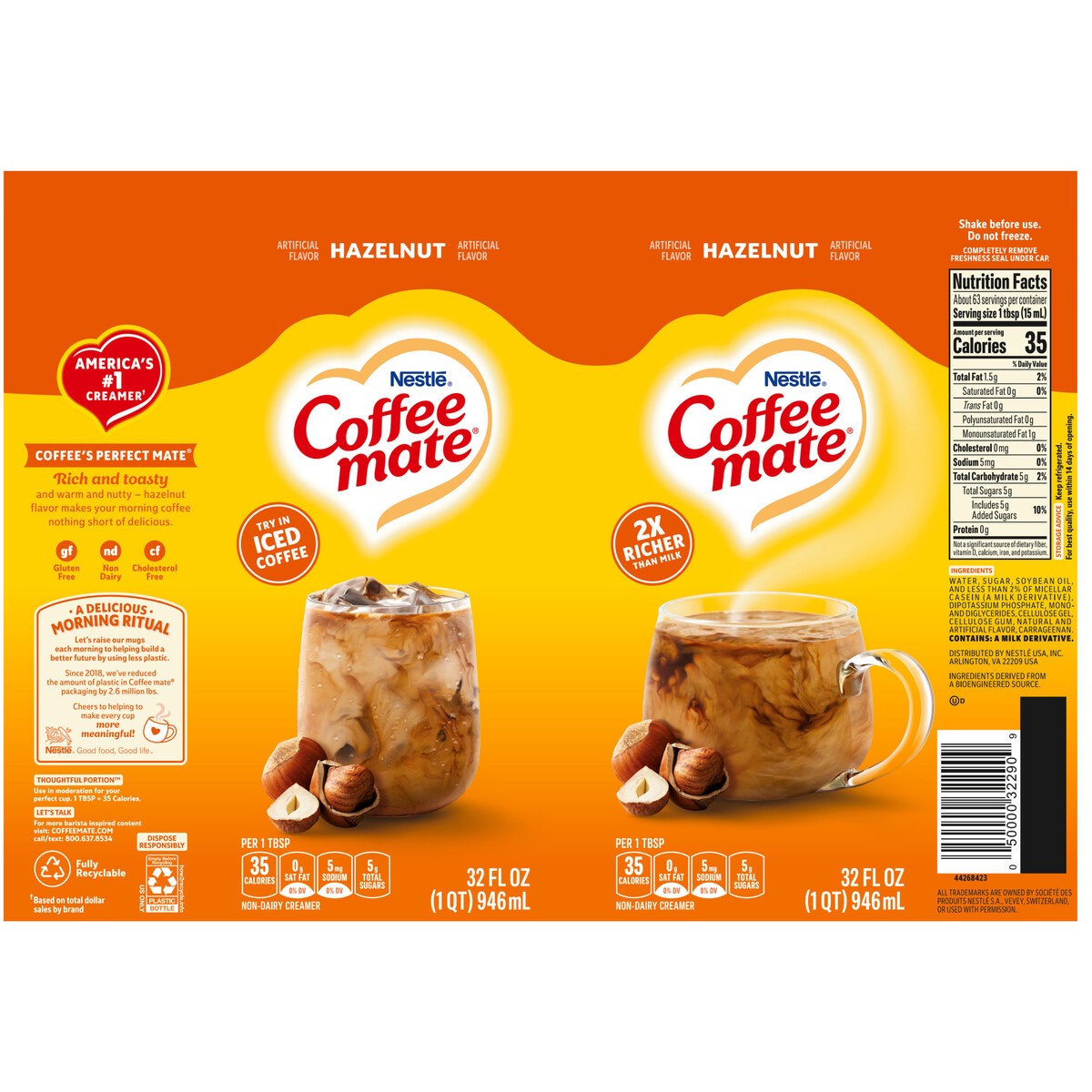 Coffee mate Hazelnut Flavored Coffee Creamer, Non-Dairy, Gluten-Free, 63 Servings