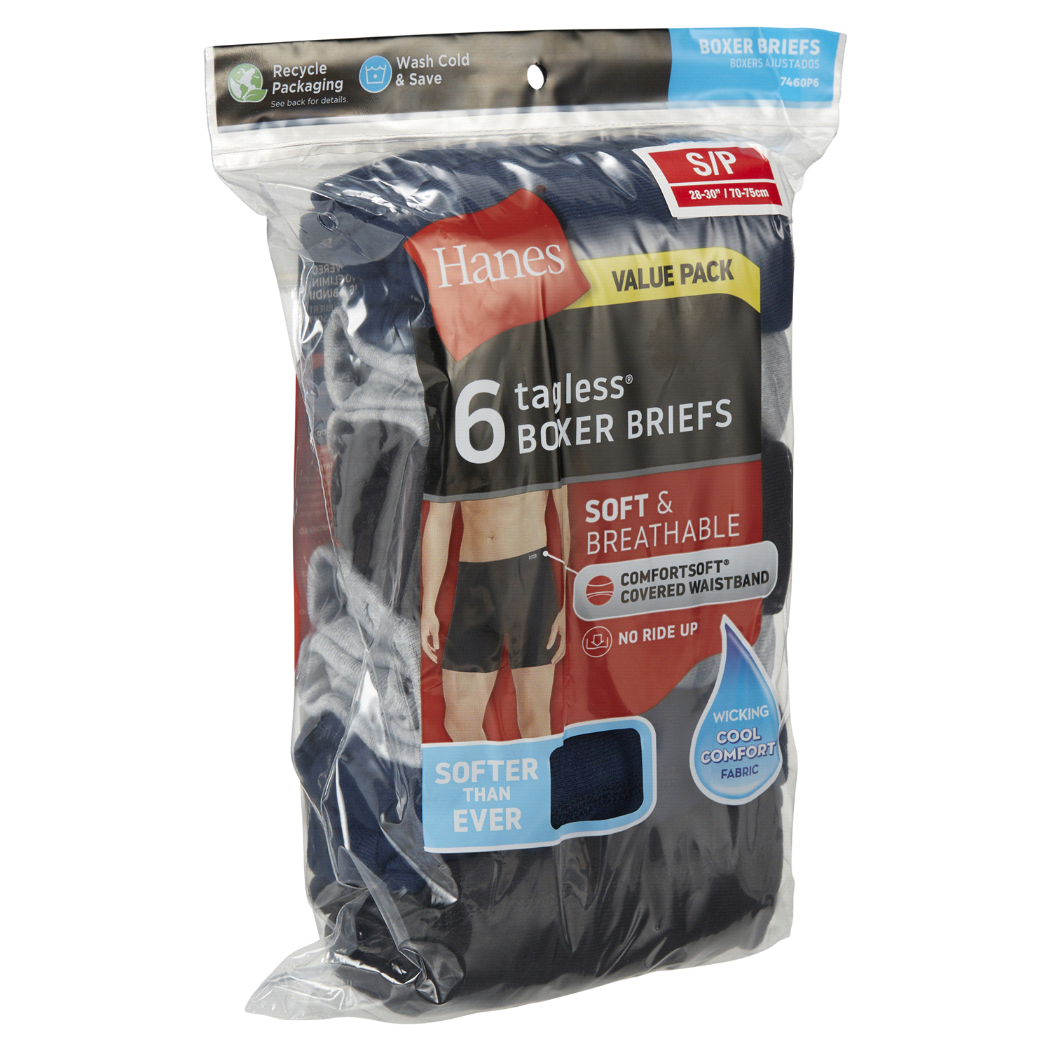 These Hanes Tagless Boxer Briefs offer everyday, all day comfort. These boxer briefs offer a No Ride Up fit, so they stay in place, and a fabriccovered ComfortSoft waistband to eliminate pinching and …