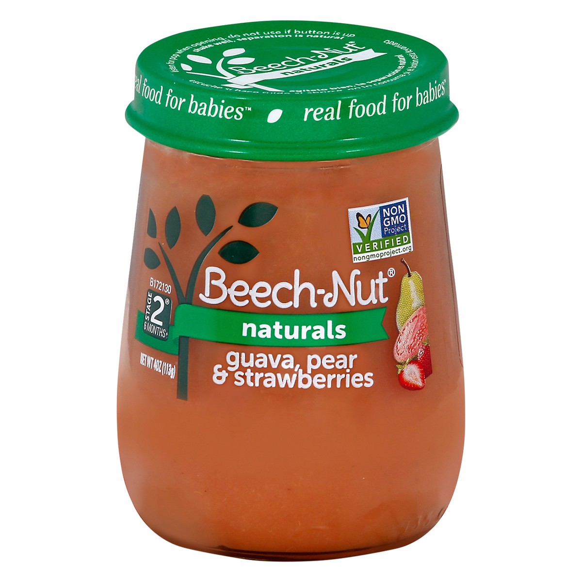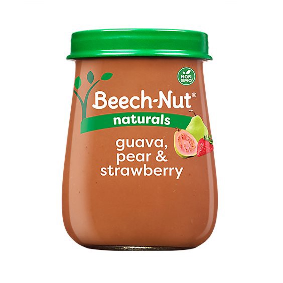 Beech-Nut Naturals Baby Food is made with simple, non-GMO ingredients. Our guava, pear and strawberry baby food puree has no artificial preservatives, colors or flavors and no added sweeteners--just w…