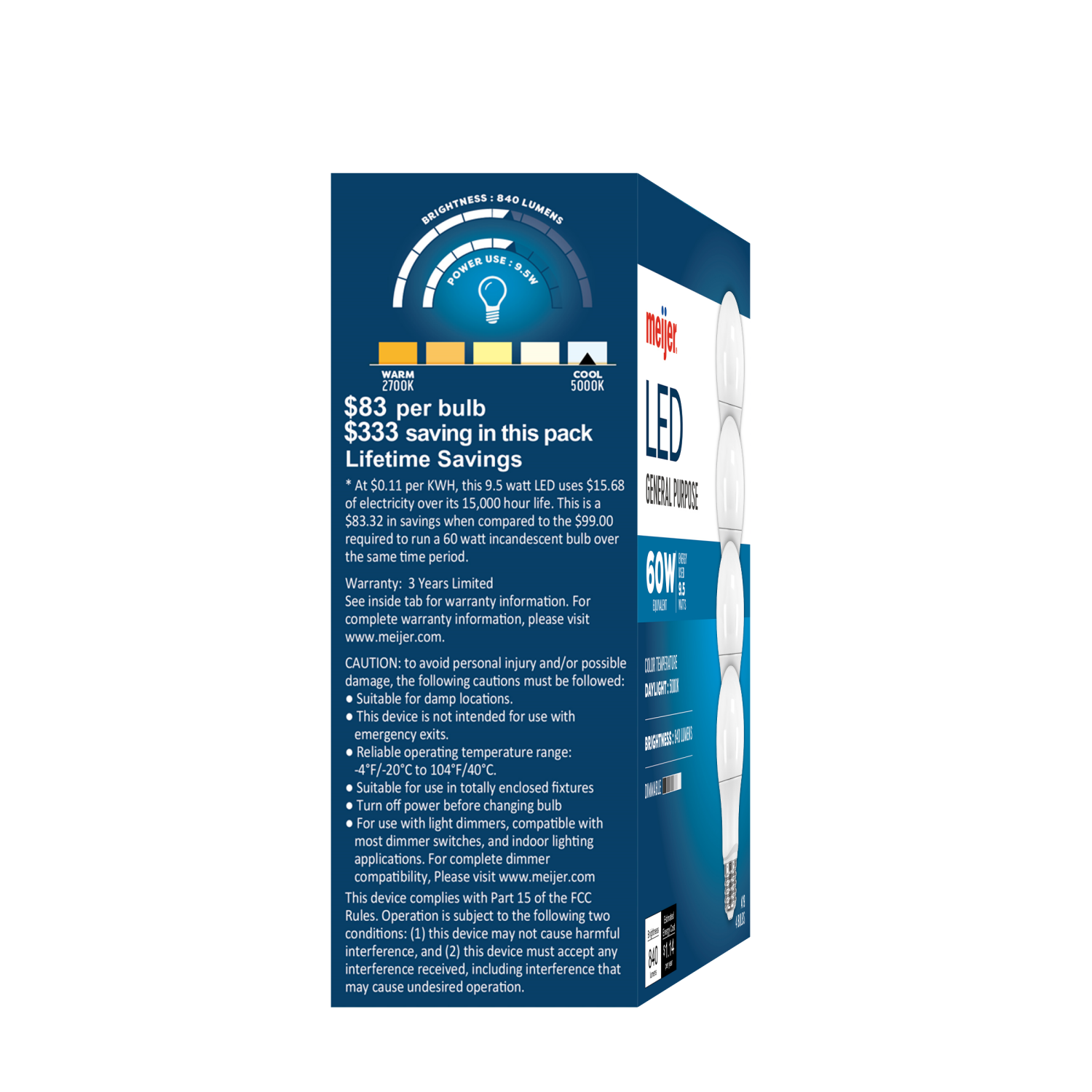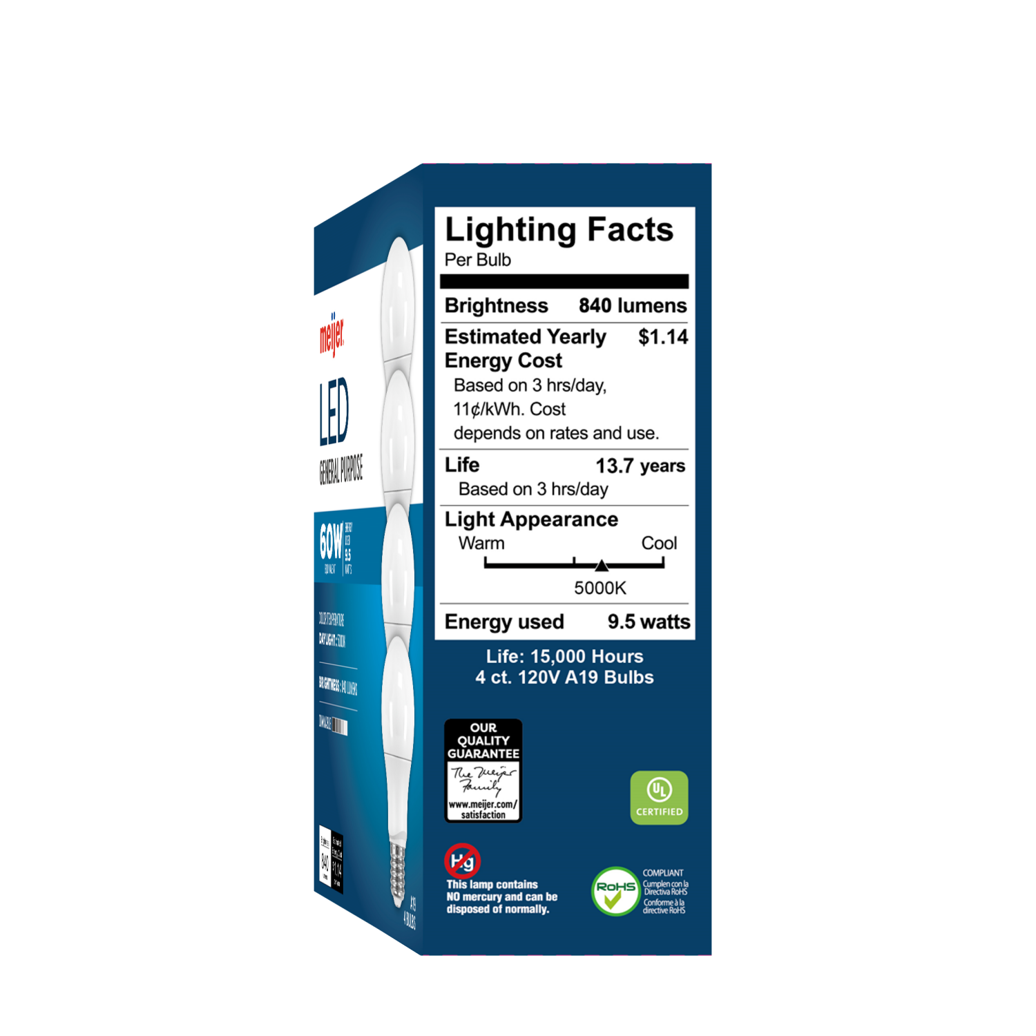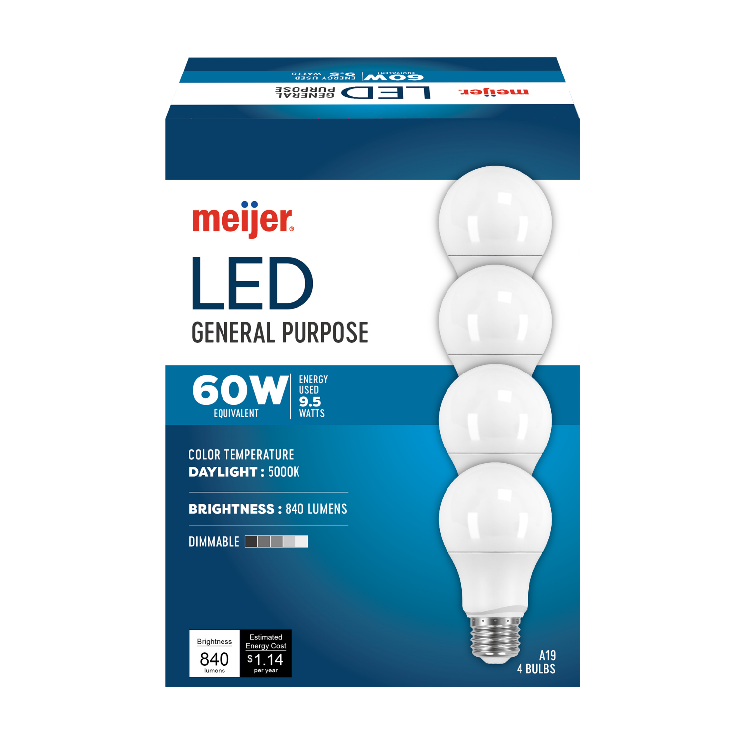 Meijer Led 9.5w A19 Dimmable Light Bulb, Daylight, 60w Equivalent, 4 Ct