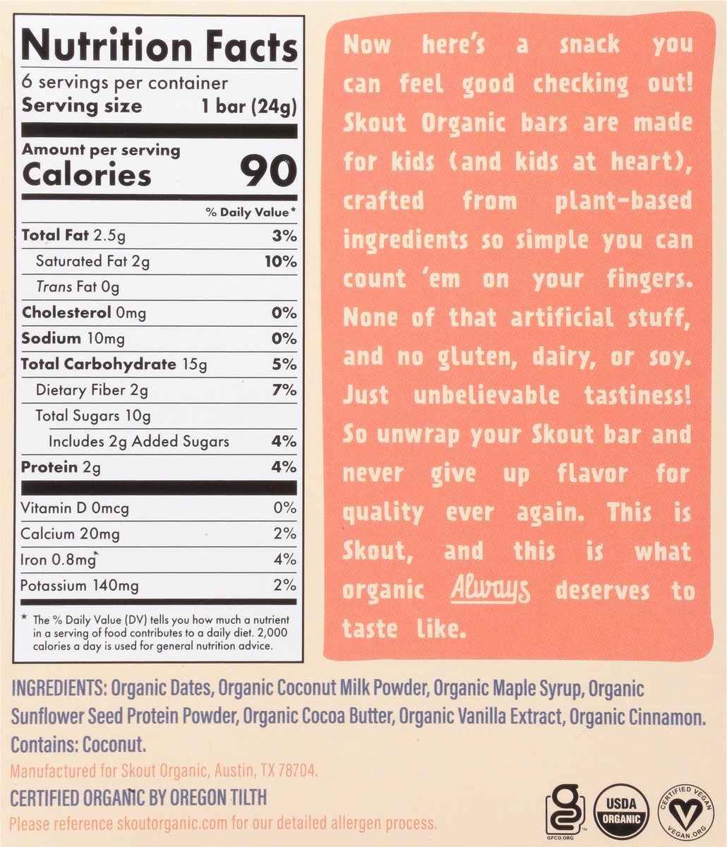 Only 7 ingredients. Now here's a snack you can feel good checking out! Skout Organic bars are made for kids (and kids at heart), crafted from plant-based ingredients so simple you can count 'em on you…
