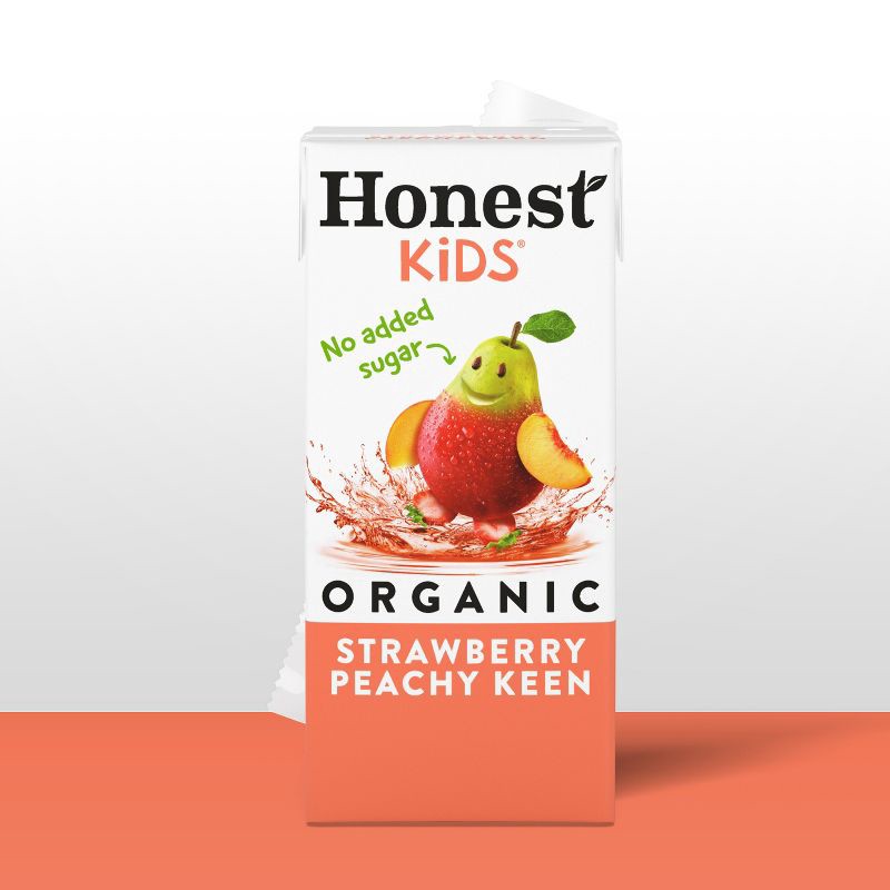 - Honest Kids organic strawberry peach drinks are made with real fruit juice, for a drink you can feel proud serving to your kids