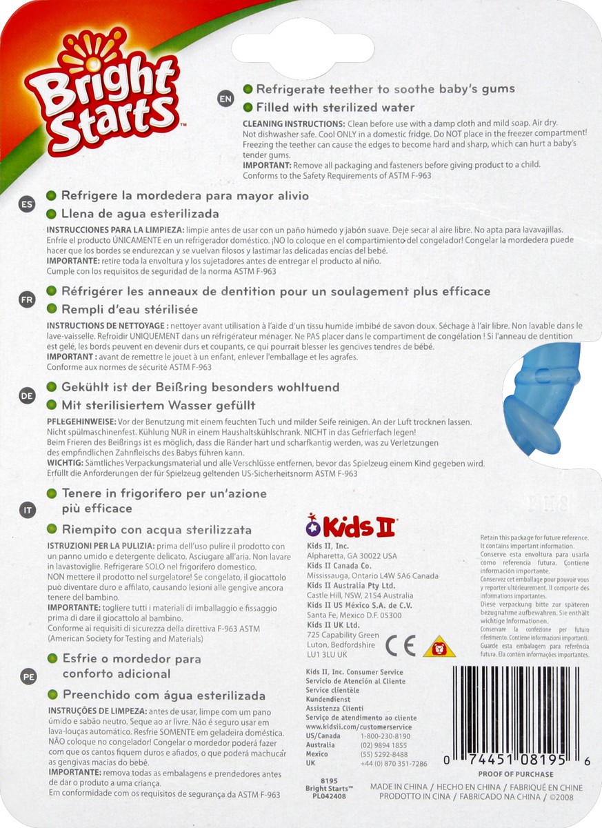 Babies love to chill out with these bright, colorful teethers ! The unique shapes are easy for little hands to hold. Bright Starts? Chill & Teethe? are filled with purified water and can be refrigerat…