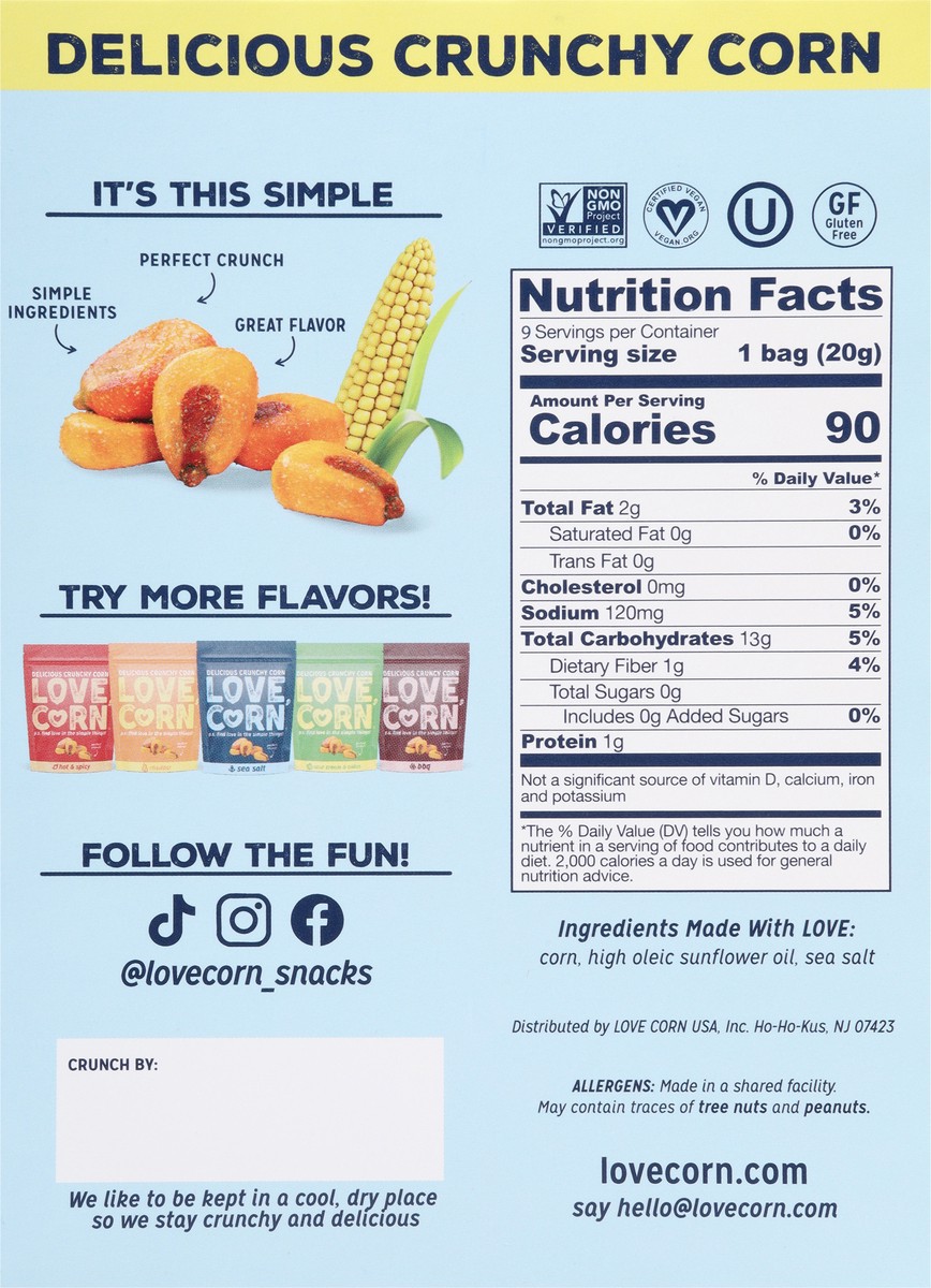 Love Corn Sea Salt Corn Snack - 9 x 0.7 oz Bags