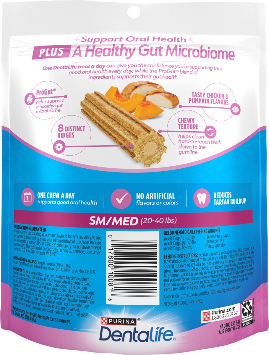 Purina Dentalife Plus Digestive Support Chicken and Pumpkin Flavor Small/Medium Dog Dental Chews 6 oz. - 8 ct Pouch