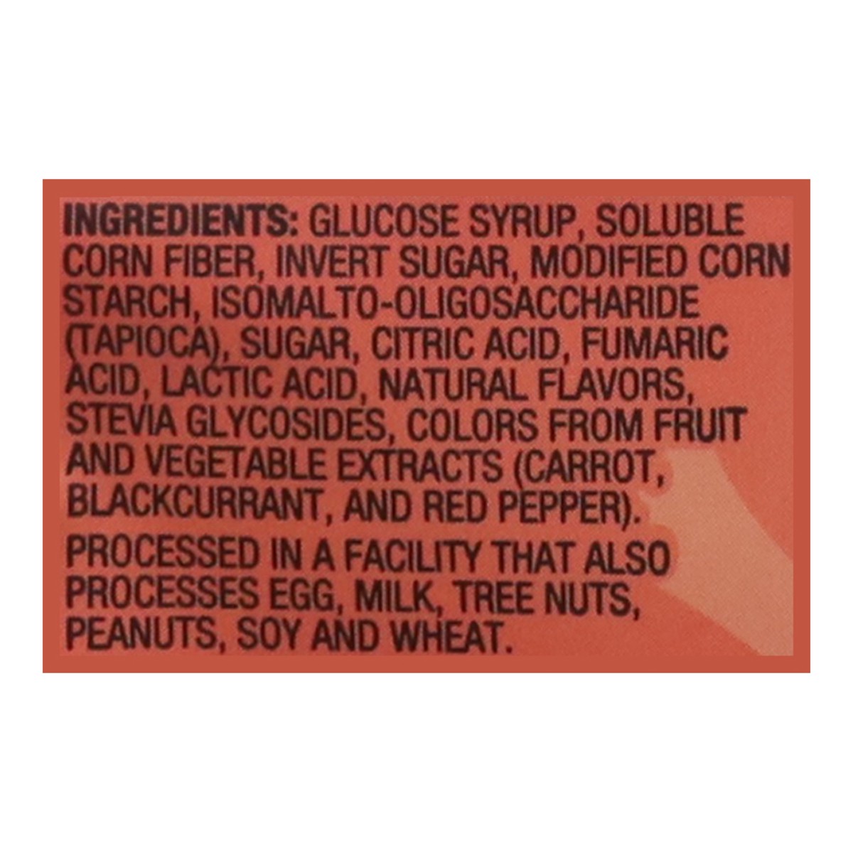 Glucose Syrup, Soluble Corn Fiber, Invert Sugar, Modified Corn Starch, Isomalto-Oligosaccharide (Tapioca), Sugar, Citric Acid, Fumaric Acid, Lactic Acid, Natural Flavors, Stevia Glycosides, Colors fro…
