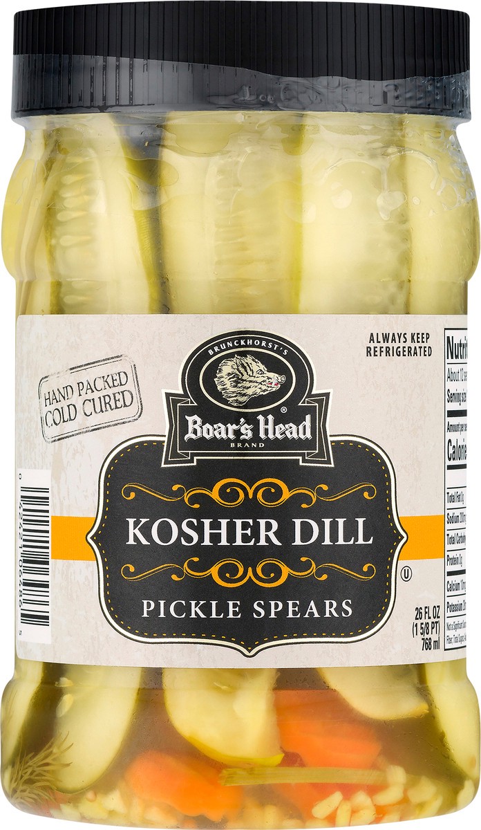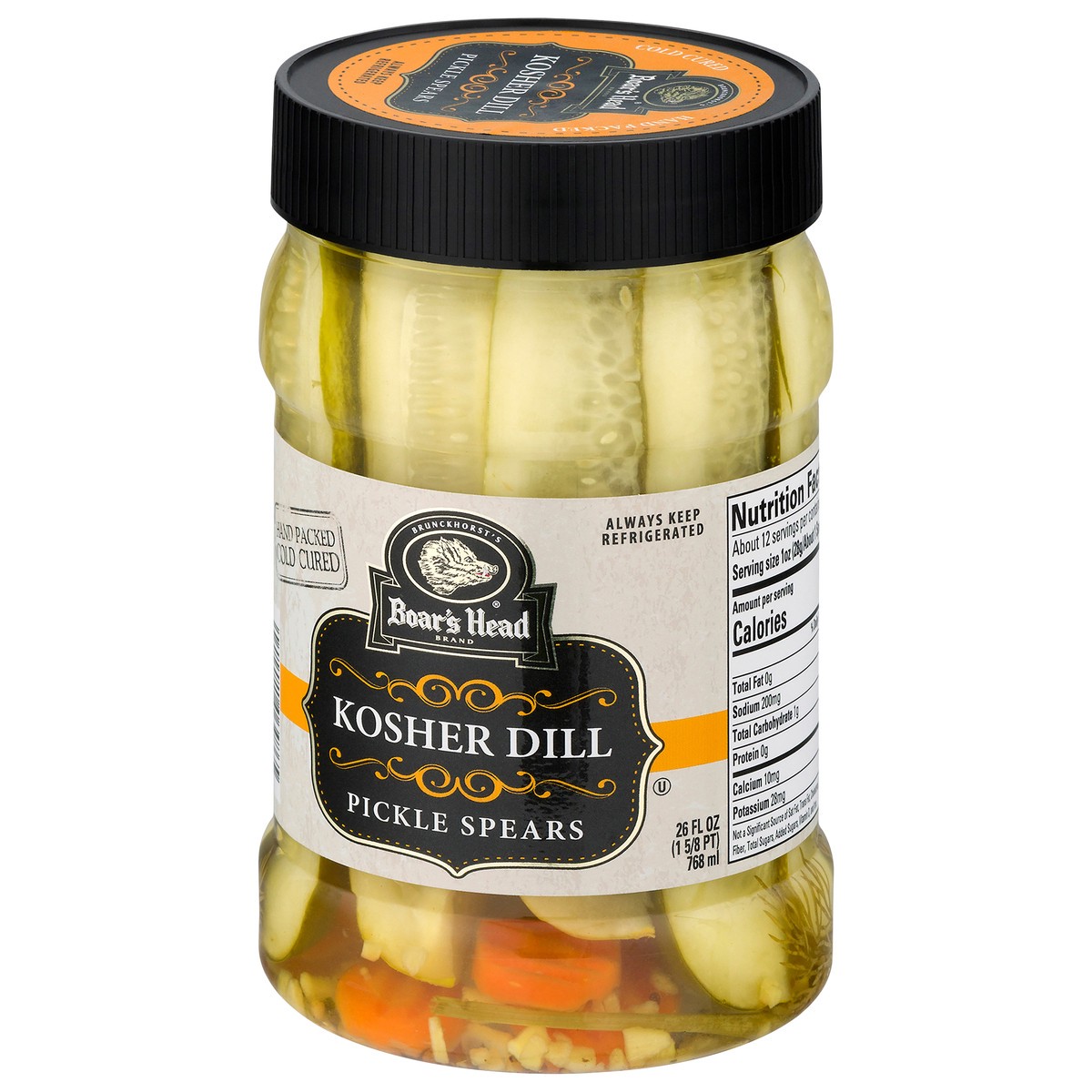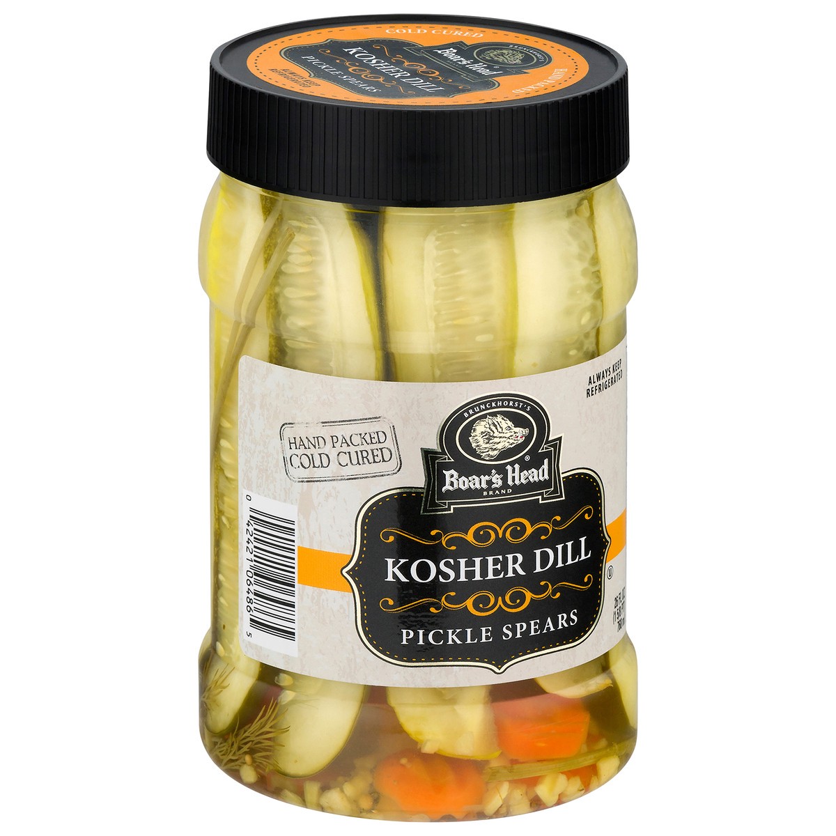 Crafted from the finest cucumbers and packed by hand into a zesty vinegar brine, these crunchy pickles are cold cured in the jar for a distinctive snap. Boar''s Head Kosher Dill Pickles achieve the pe…