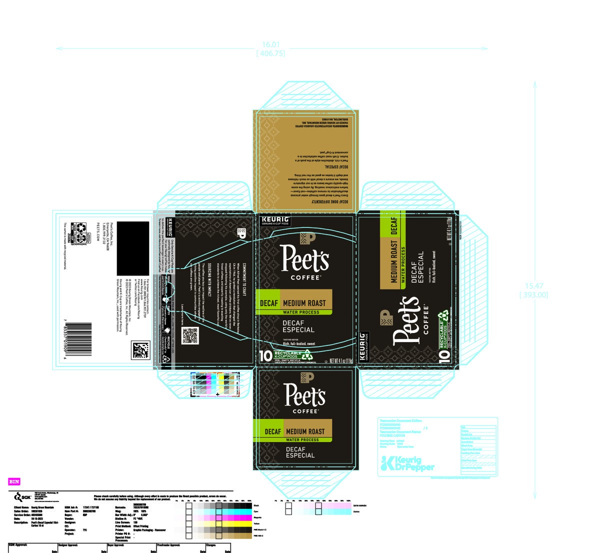 Peet's Coffee Decaffeinated Especial Medium Roast Single Serve Coffee Pods - 10 Count