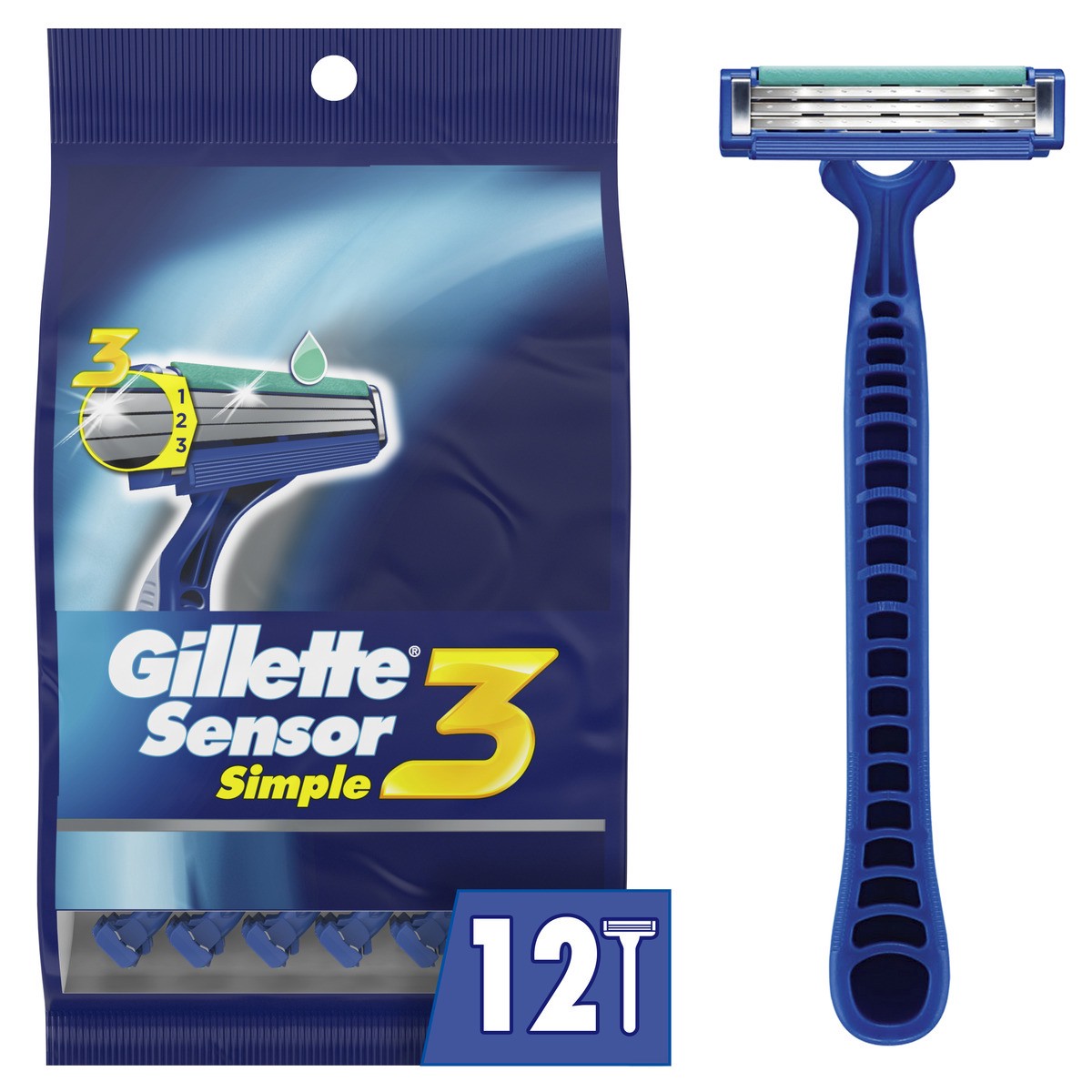 Gillette Sensor3 Men''s Disposable razor is the world''s #1 selling 3-blade disposable. The razor offers a smoother shave and has 100% better rinsing (vs. Sensor2 Plus). It features an Enhanced Lubras…