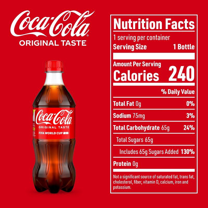 - 20 fl oz bottle of Coca-Cola Original Taste soda, a soft drink crafted for celebrations, family dinners, and any moment you want to bring people together