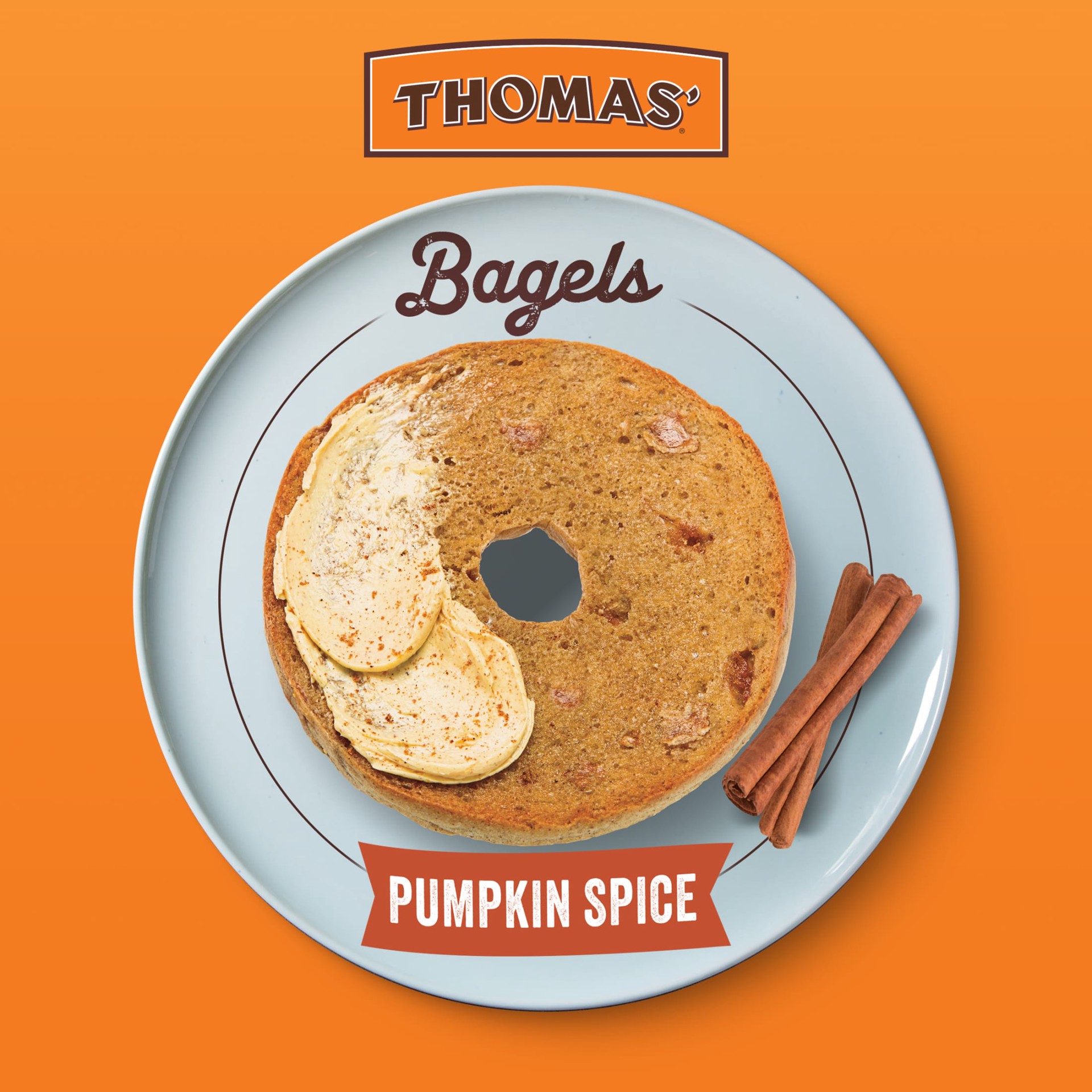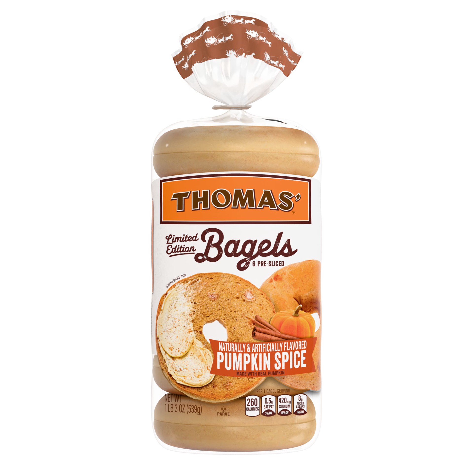 It''s that time of year again, find irresistible pumpkin spice flavor in your favorite bagel. Thomas'' Pumpkin Spice Bagels are soft on the inside, crunchy on the outside and made with real pumpkin fo…