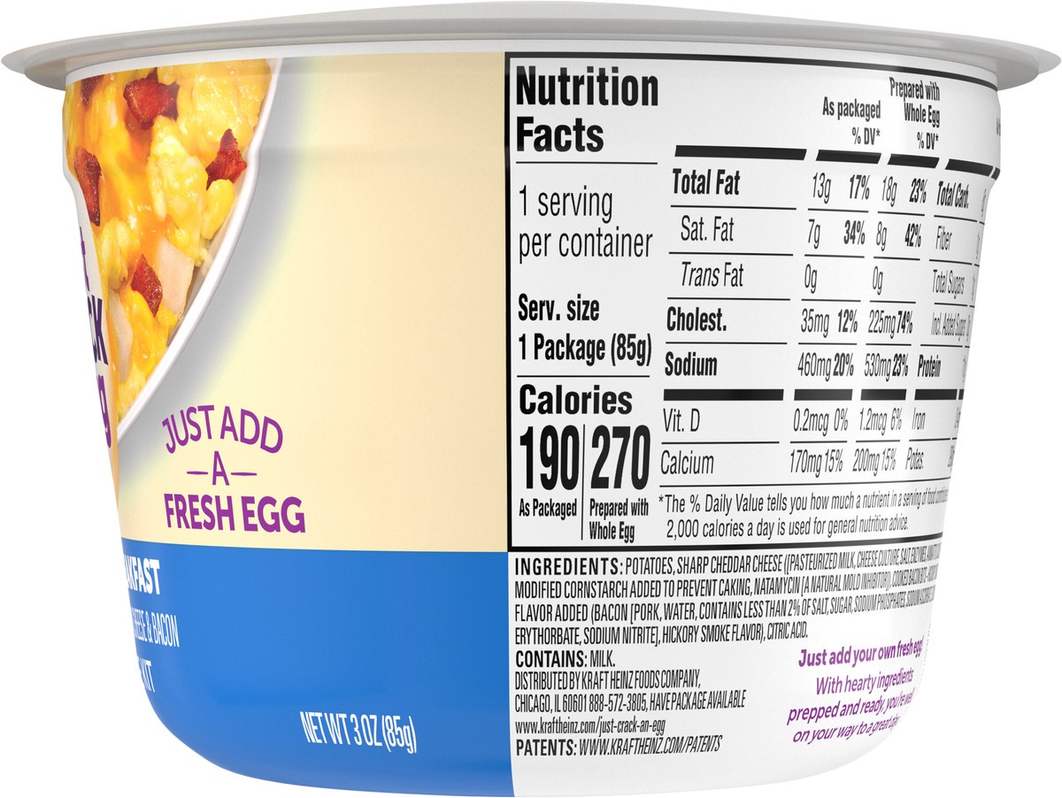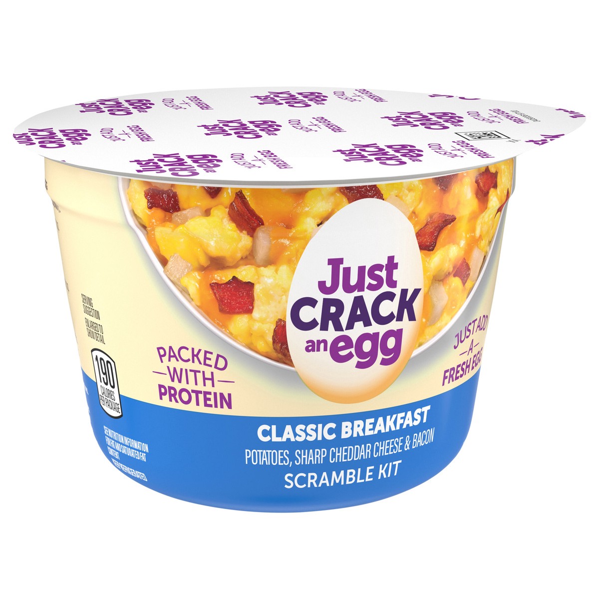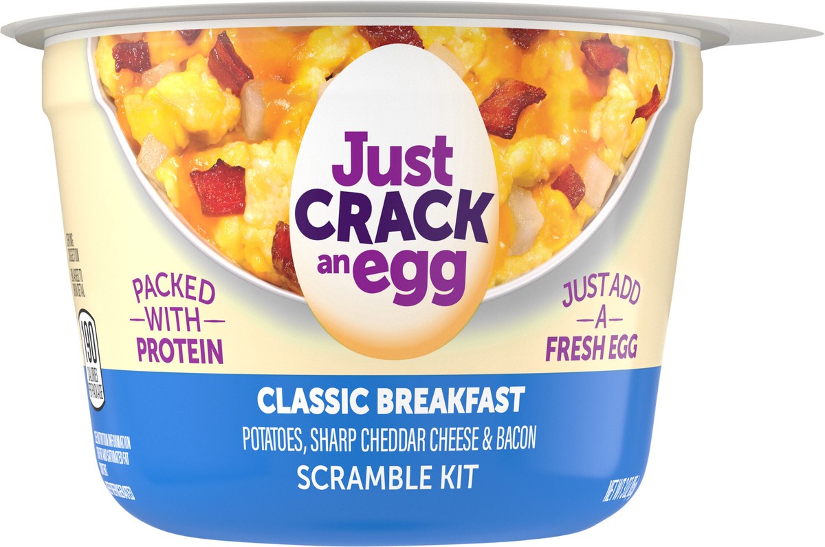 Kickstart your morning. Our Just Crack an Egg Scramble Kit lets you fuel up with protein and calcium. Just Crack an Egg Classic Breakfast Scramble Kit contains potatoes, sharp cheddar cheese and bacon…