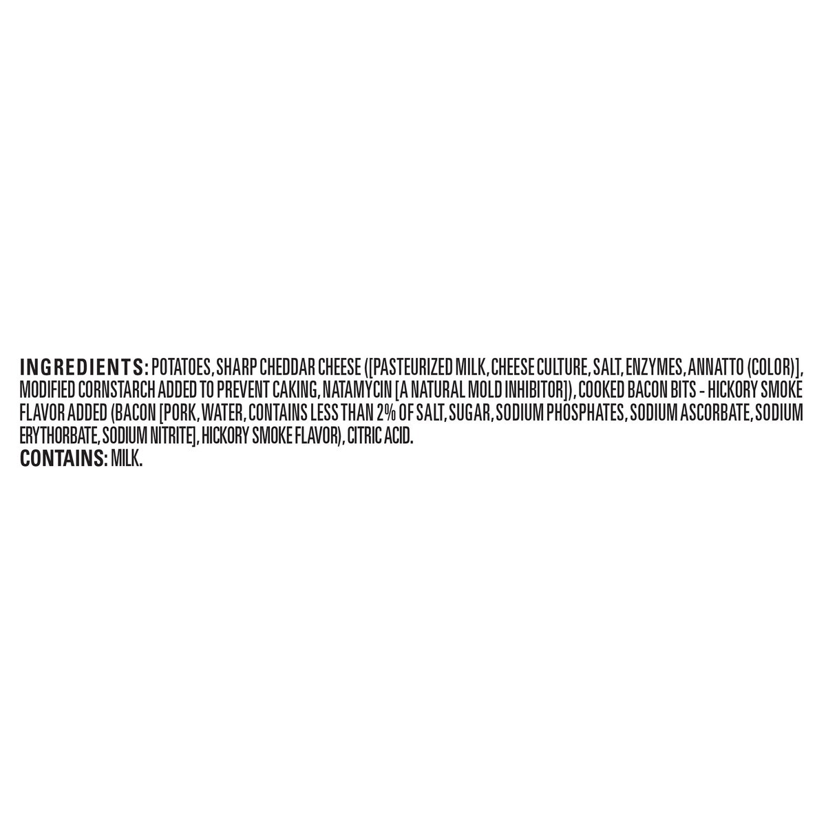 POTATOES, SHARP CHEDDAR CHEESE ([PASTEURIZED MILK, CHEESE CULTURE, SALT, ENZYMES, ANNATTO (COLOR)], MODIFIED CORNSTARCH ADDED TO PREVENT CAKING, NATAMYCIN [A NATURAL MOLD INHIBITOR]), COOKED BACON BIT…