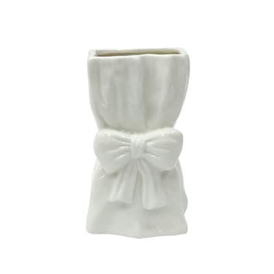 Buy the 7" White Bag with Bow Ceramic Vase by Ashland at Michaels. Featuring a bag shape with a bow and solid ceramic construction, add a few short red rose stems and place on your mantel to add a tou…