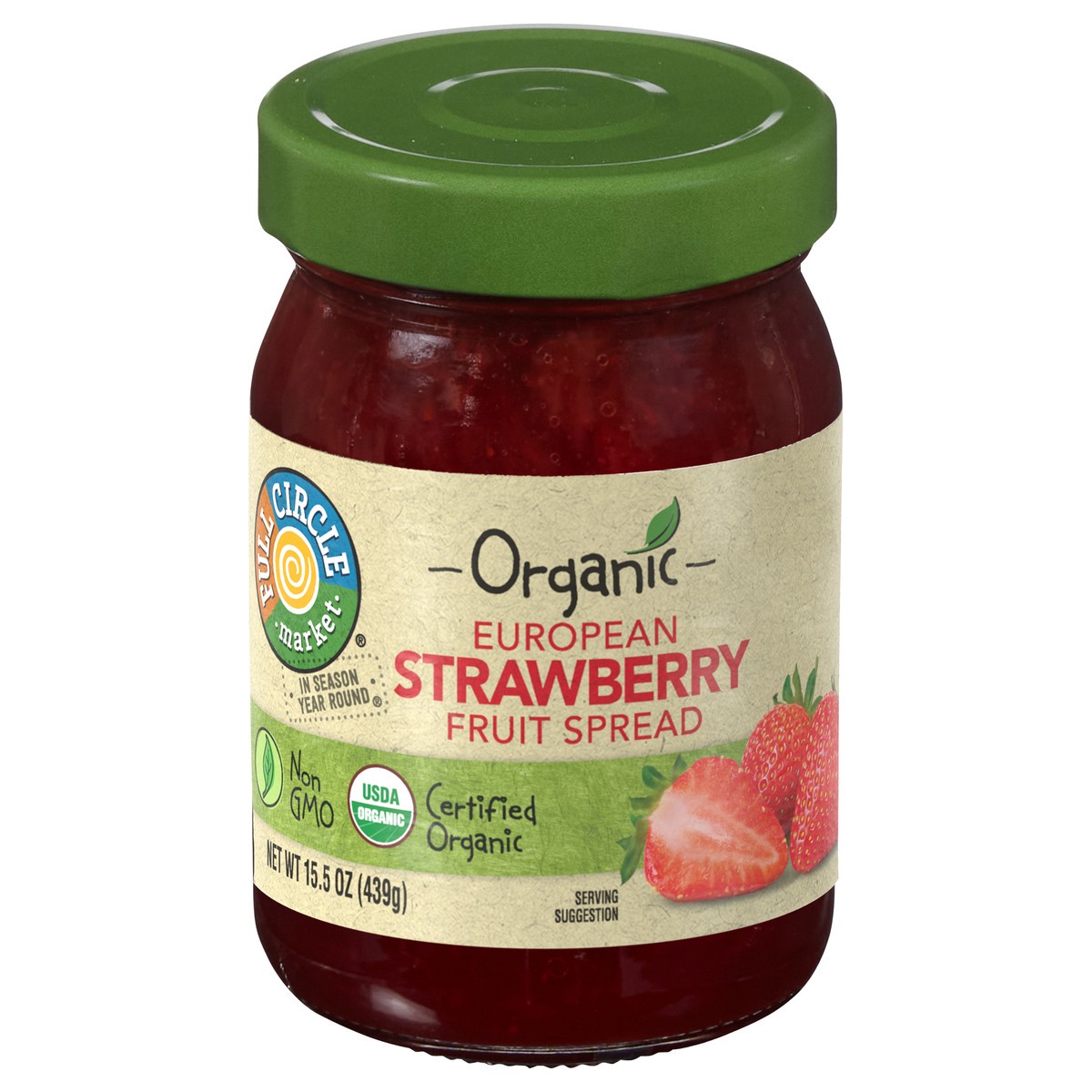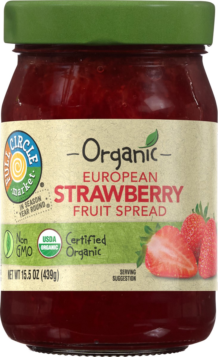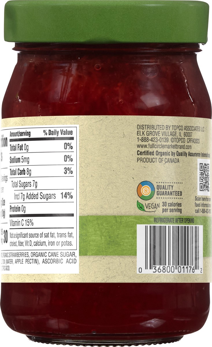 Organic Strawberries, Organic Cane Sugar, Pectin Solution (Water, Apple Pectin), Ascorbic Acid (Vitamin C), Citric Acid.
