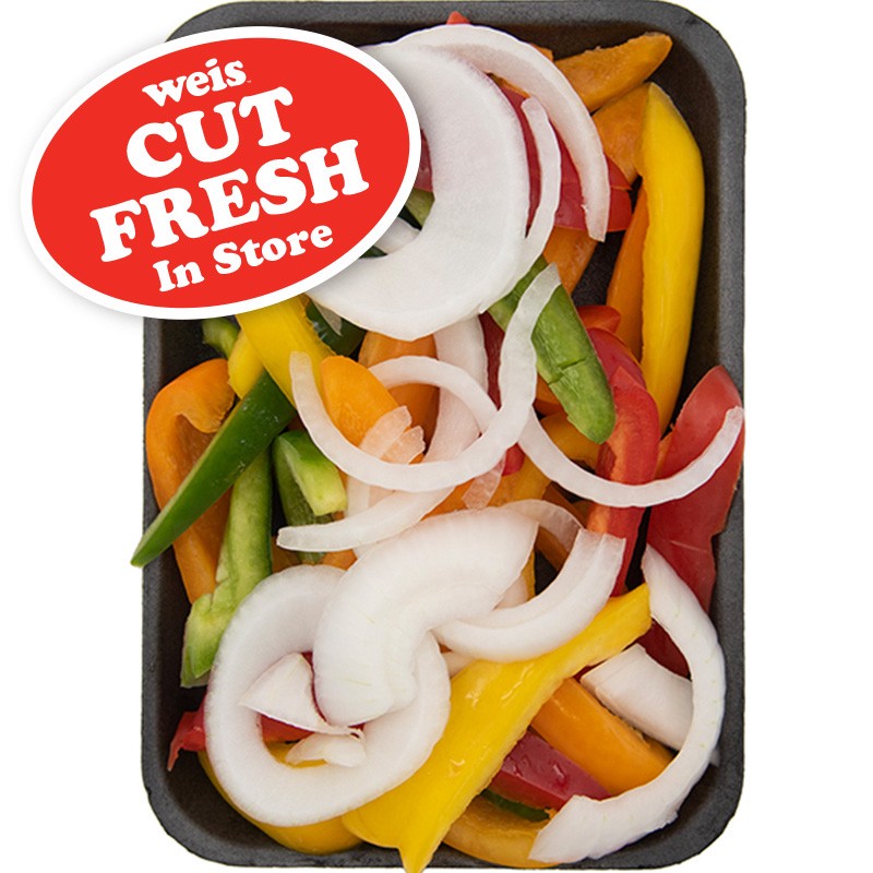 RED PEPPER, ORANGE PEPPER, YELLOW PEPPER, GREEN PEPPER, ONION