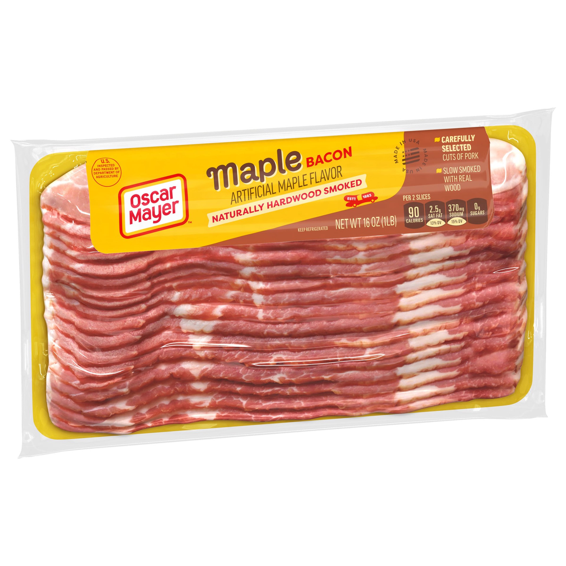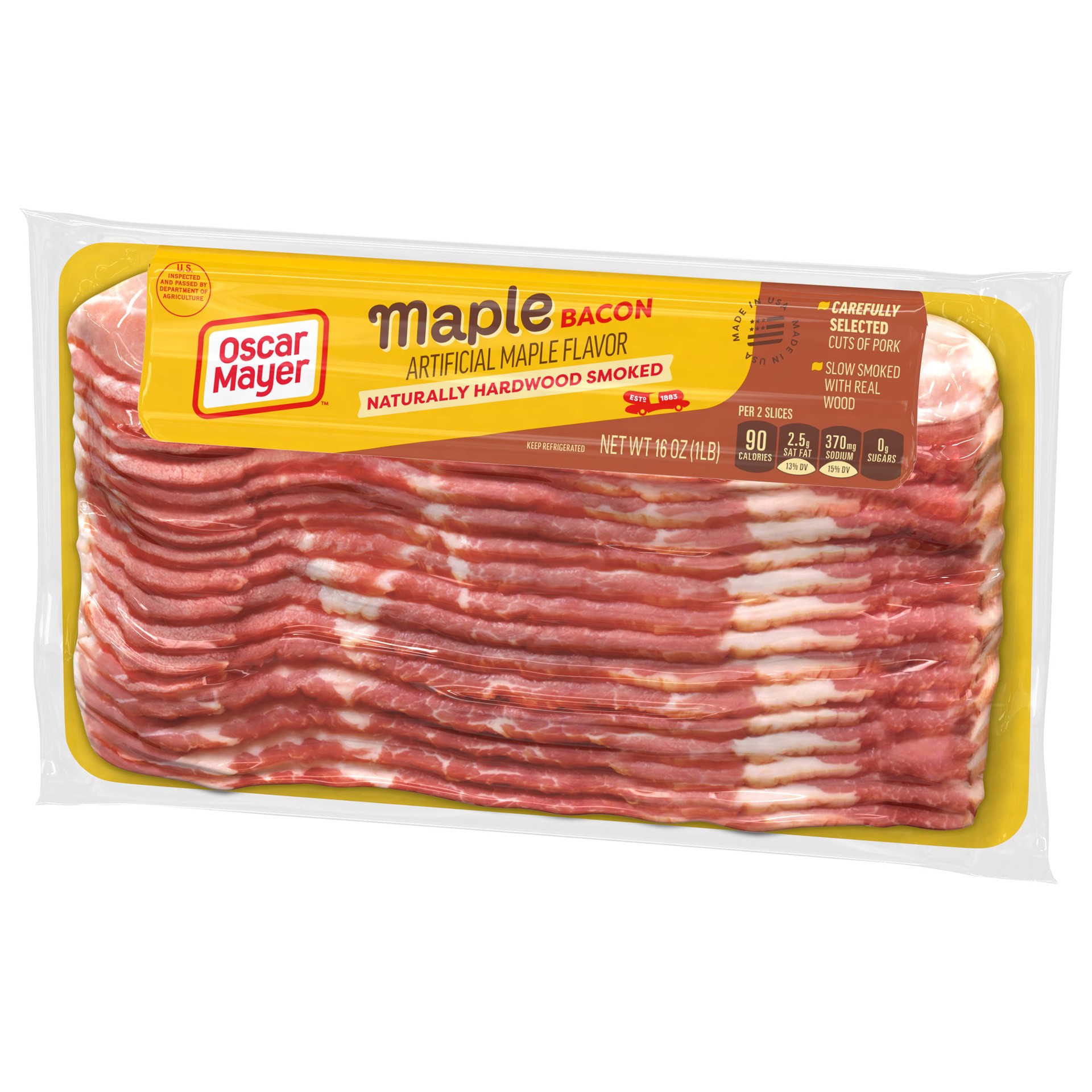 Everything is better with bacon. Oscar Mayer Naturally Hardwood Smoked Maple Bacon Artificial Maple Flavor Slices deliver smoky bacon with a hint of maple flavor. Slow smoked with real wood for a prem…