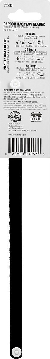 10 in (25.4 cm) Quality since 1924. For general purpose cutting. Flex back resists breakage. 24 TPI medium. Pick the right blade! Available in 10 inch & 12 inch lengths. 18 Tooth: Tool steel-iron pipeā¦