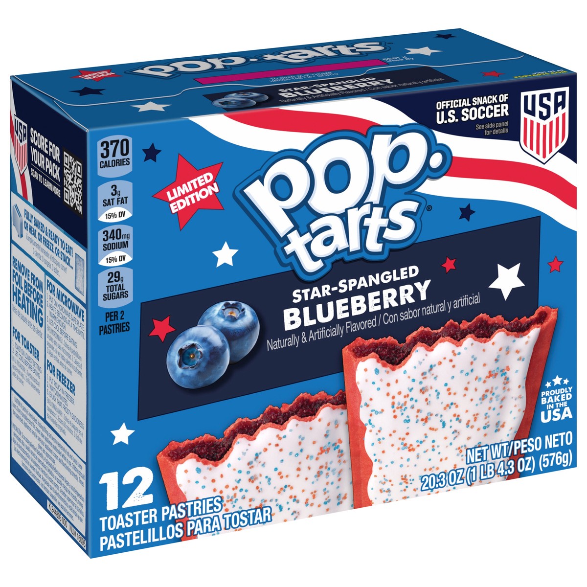 - Celebrate soccer season with Limited Edition Pop-Tarts Star-Spangled Blueberry toaster pastries; Score big with sweet filling in a soft pastry crust