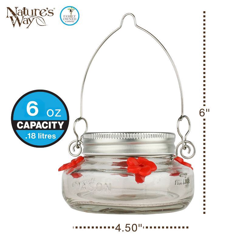 Nature's Way Bird Products 6oz Mason Jar Hummingbird Glass Feeder 2.5"