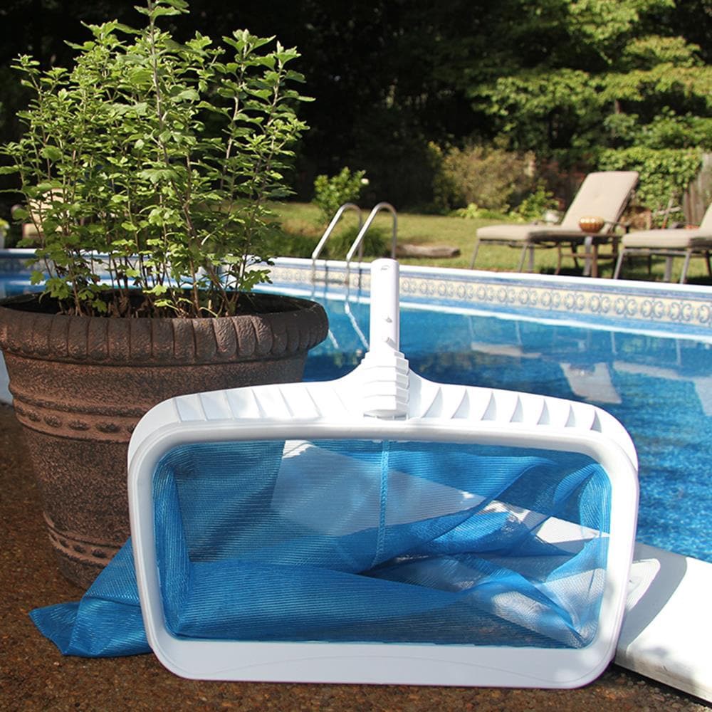 Deep-net leaf skimmer. Nylon net for long life and easier use. Light weight plastic frame. Large design to clean surface debris faster. Won’t damage pool liner. Wide-mouth design. Pool skimmer with de…