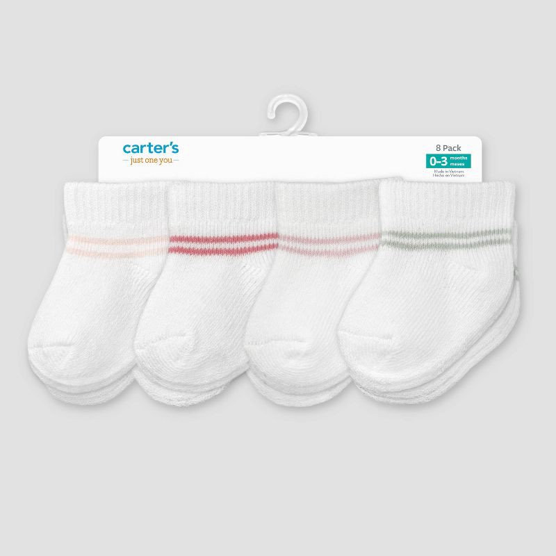 Carter's Just One You® Baby Girls' 8pk Striped Ankle Socks - 3-12M