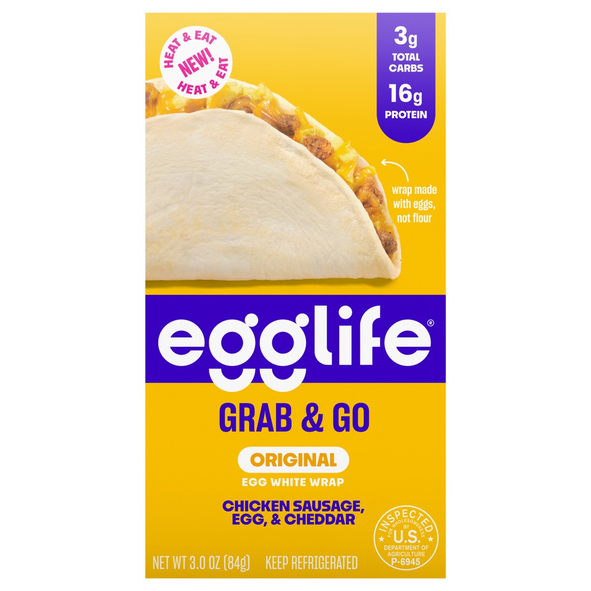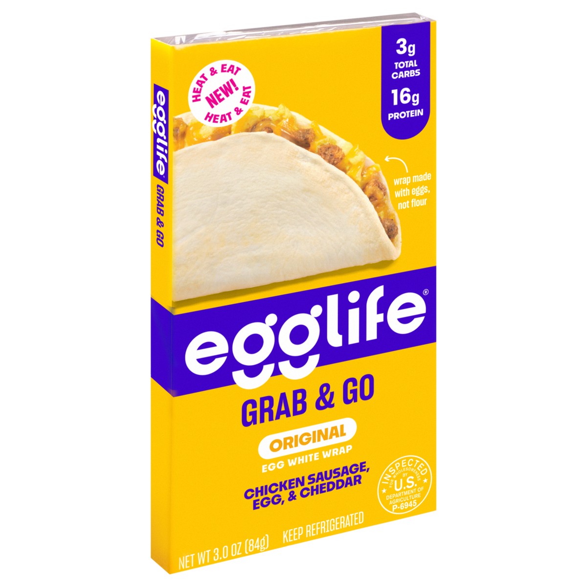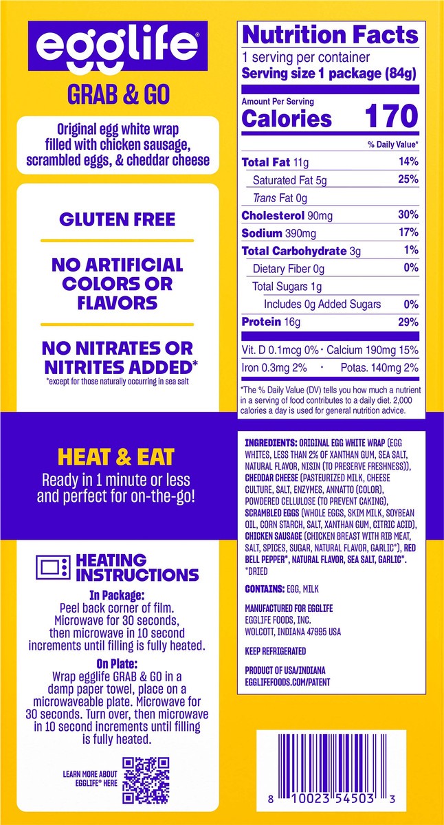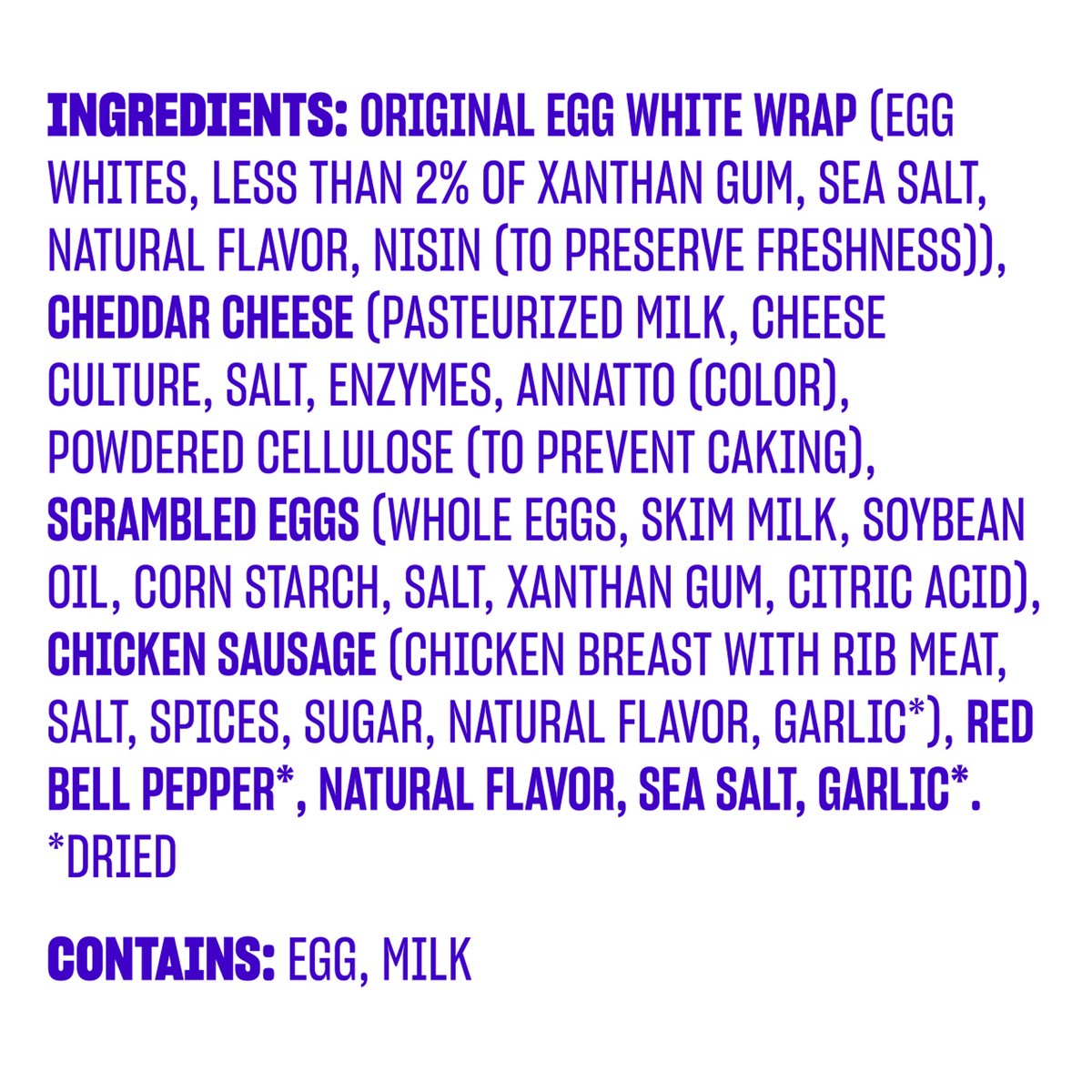 Original Egg White Wrap (Egg Whites, Less than 2% of Xanthan Gum, Sea Salt, Natural Flavor, Nisin (to Preserve Freshness)), Cheddar Cheese (Pasteurized Milk, Cheese Culture, Salt, Enzymes, Annatto (Co…