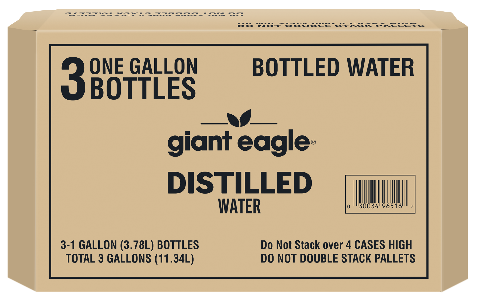 Giant Eagle Distilled Water 3pack, Bottled water, don't stack over 4 cases high, don't double stack pallets