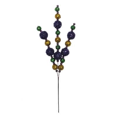 Purchase the 18.5" Mardi Gras Ball Pick by Celebrate It at Michaels. Use this pick to enhance your holiday floral arrangements for Mardi Gras. The pick features an array of purple, green and gold bead…