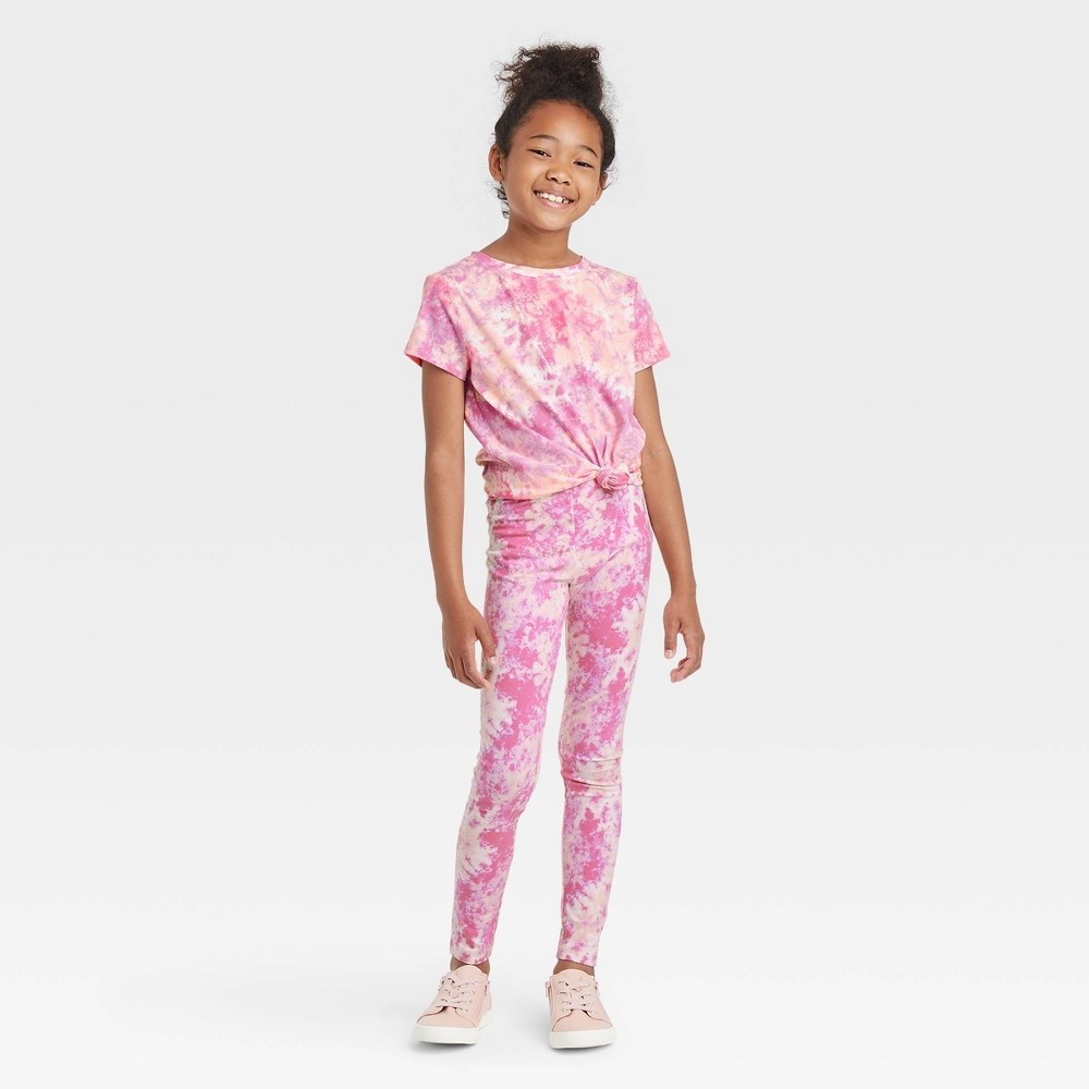 Add a playful splash of pattern to her casual look with these Pink/Cream Tie-Dye Leggings from Cat & Jack. These full-length leggings make a practical addition to her everyday bottoms. They feature a …