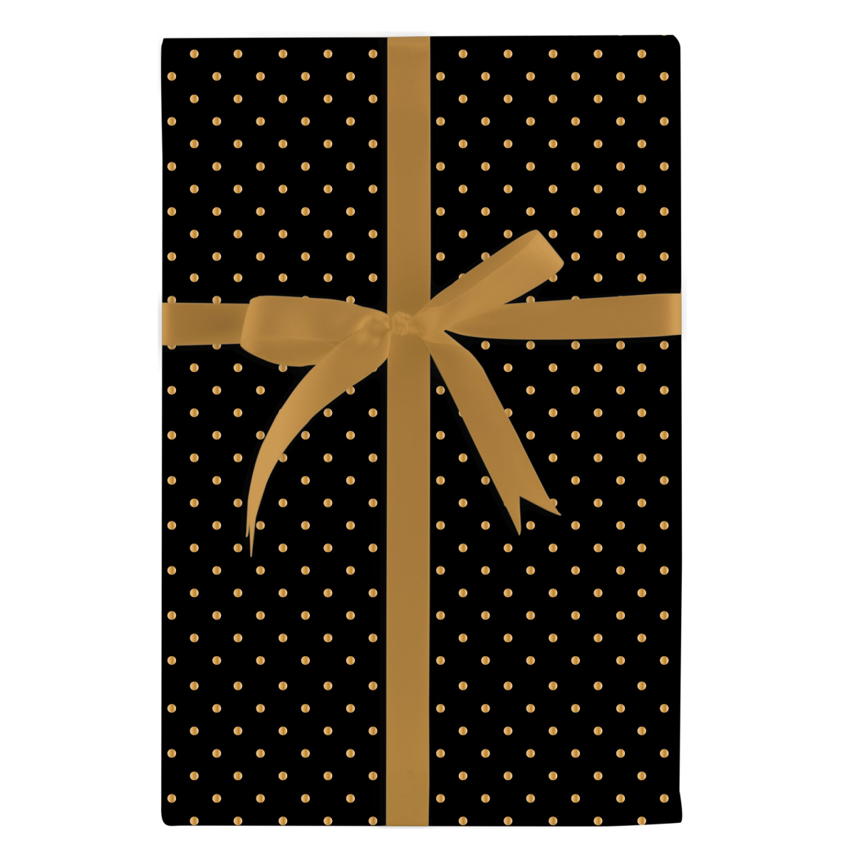 Elevate your gift presentation with this luxurious Gold Swiss Dots Gift Wrap. Featuring a sophisticated black design adorned with elegant gold foil dots, this wrapping paper adds a touch of elegance t…