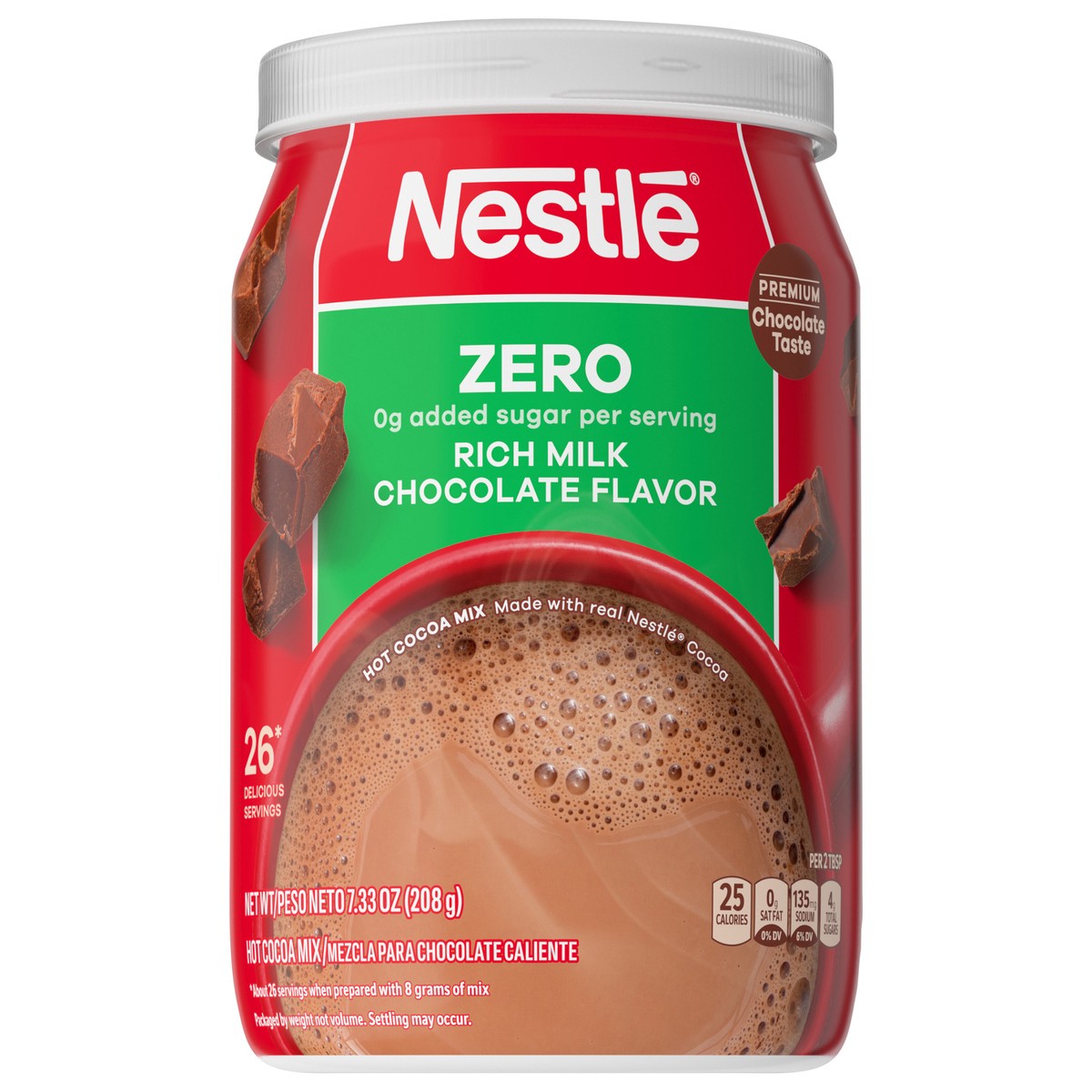 Nestle Hot Cocoa Zero, 0g Added Sugar Rich Milk Chocolate Flavored Mix Powder for Hot Chocolate Canister