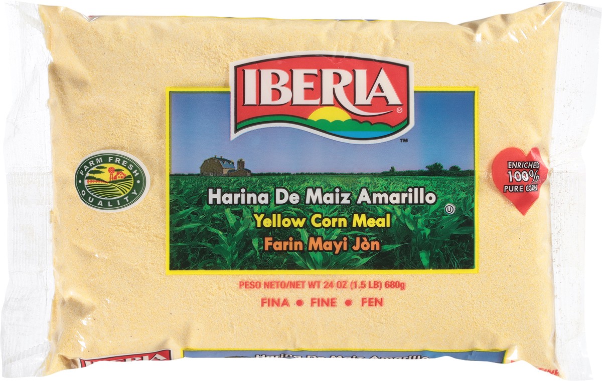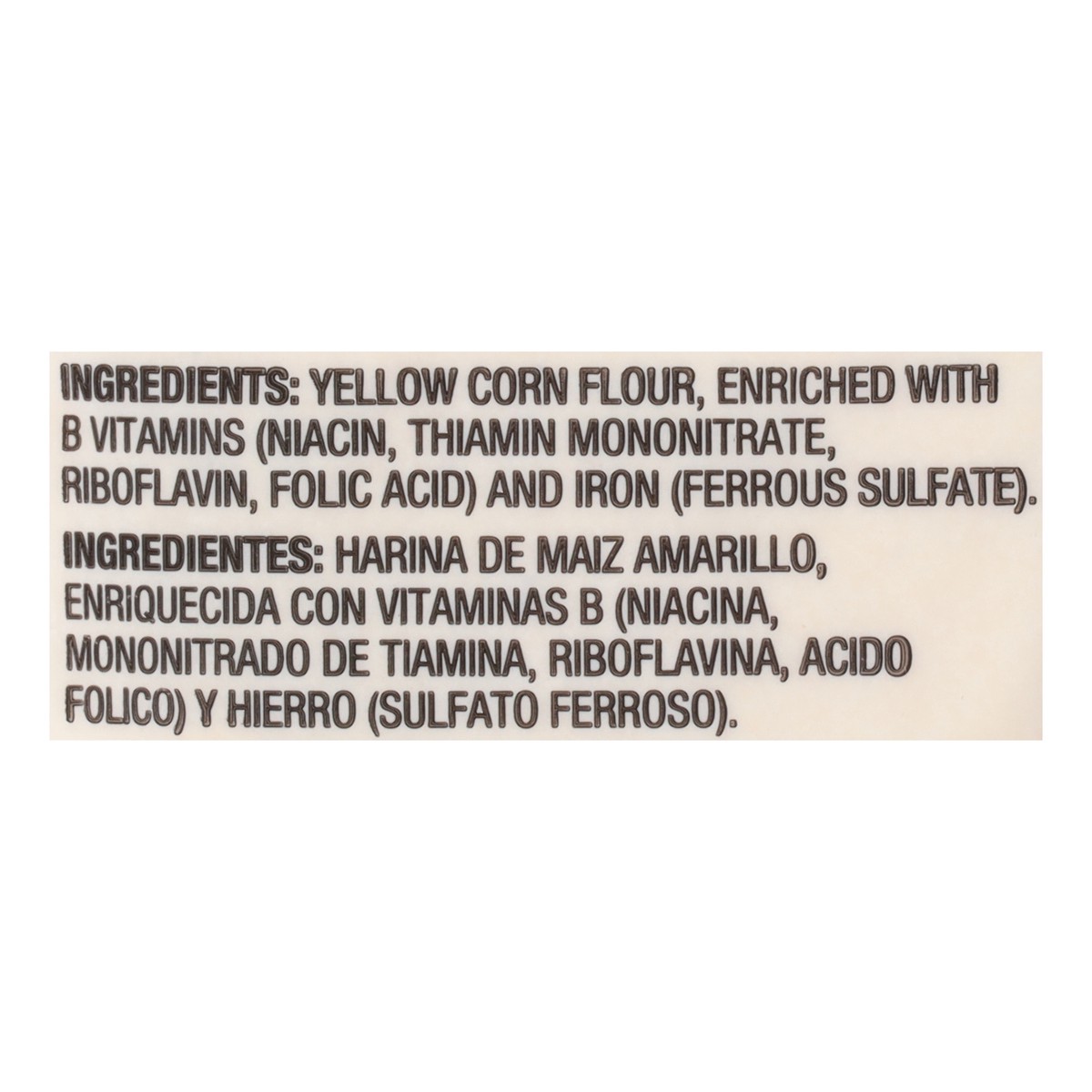 Yellow Corn Flour, Enriched with B Vitamins (Niacin, Thiamin Mononitrate, Riboflavin, Folic Acid) and Iron (Ferrous Sulfate).
