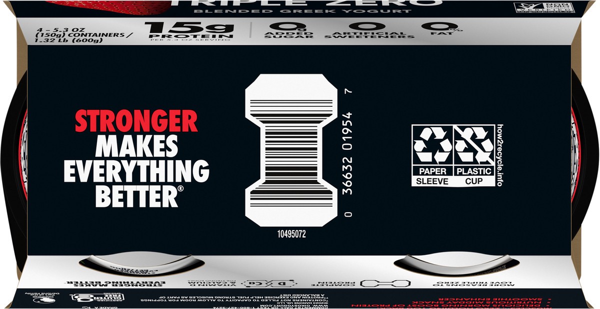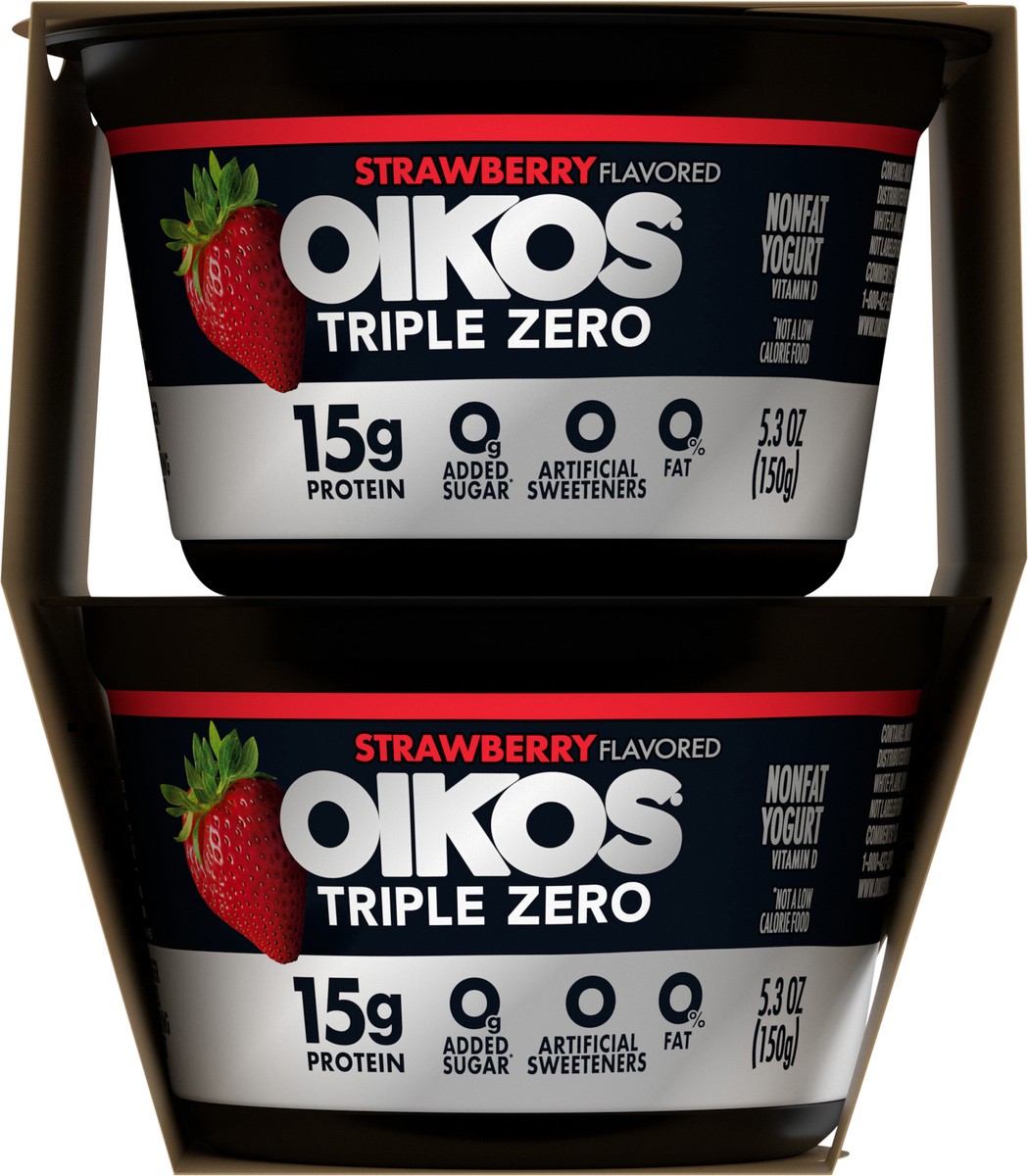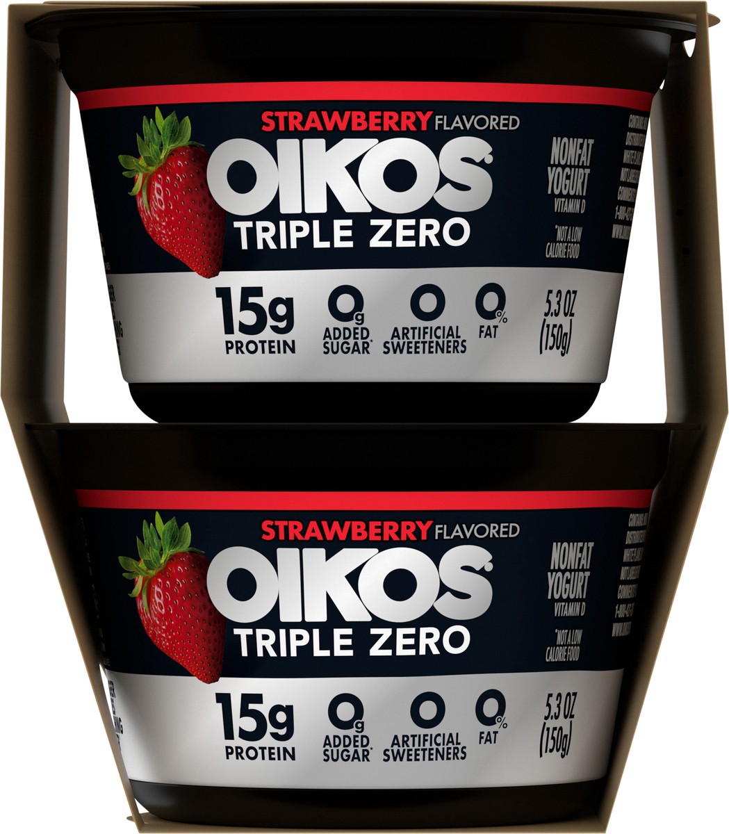 Enjoy epic tastes with Oikos Triple Zero Nonfat Strawberry Greek Yogurt Pack, four delicious nonfat Greek yogurt cups with more of what you want and less of what you don''t. Each Oikos Triple Zero yog…