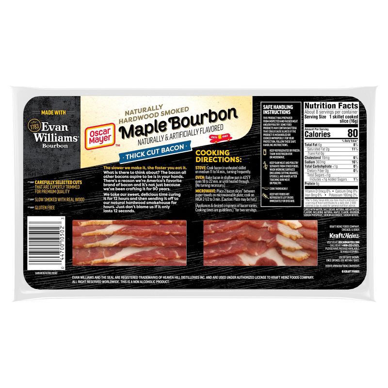 Stack up savory flavor with Oscar Mayer Maple Bourbon Naturally and Artificially Flavored Bacon slices, which combine sweet and smoky flavor. Made with Evan Williams Bourbon, our bourbon maple bacon iā¦